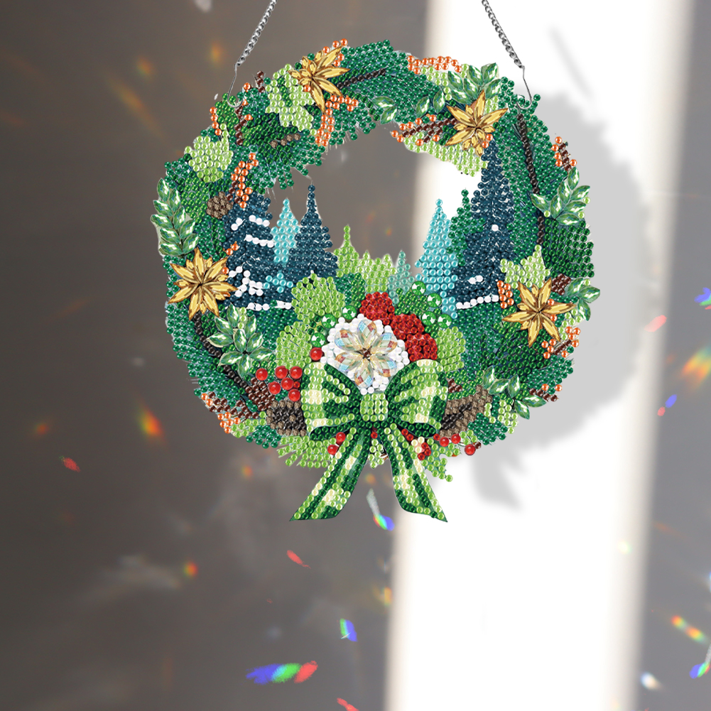 DIY Christmas Wreath Acrylic Single Side Special Shaped Diamond Painting Hanging Ornament
