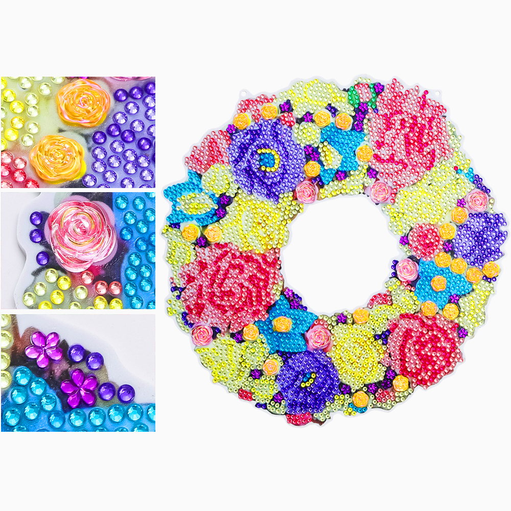 Our art garland kit takes our crystal card concept a step further, enabling you to create exquisite artwork to decorate your house or give it as a handmade gift. The concept is similar to digital painting, also known as 5D diamond painting. Each design has a numbered sticky template. Use this tool to lift the colored resin gemstone and place it on the corresponding numbered point. This technique is a relaxing and therapeutic handicraft activity, suitable for adults and children (over 6 years old). The result is an amazing work of rhinestone art that you can install on the wall or give it as a gift to your loved ones.