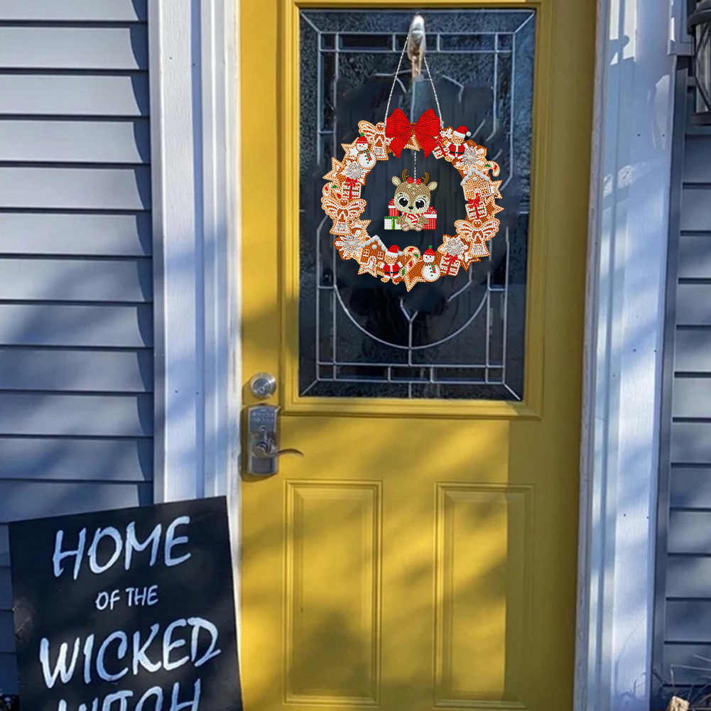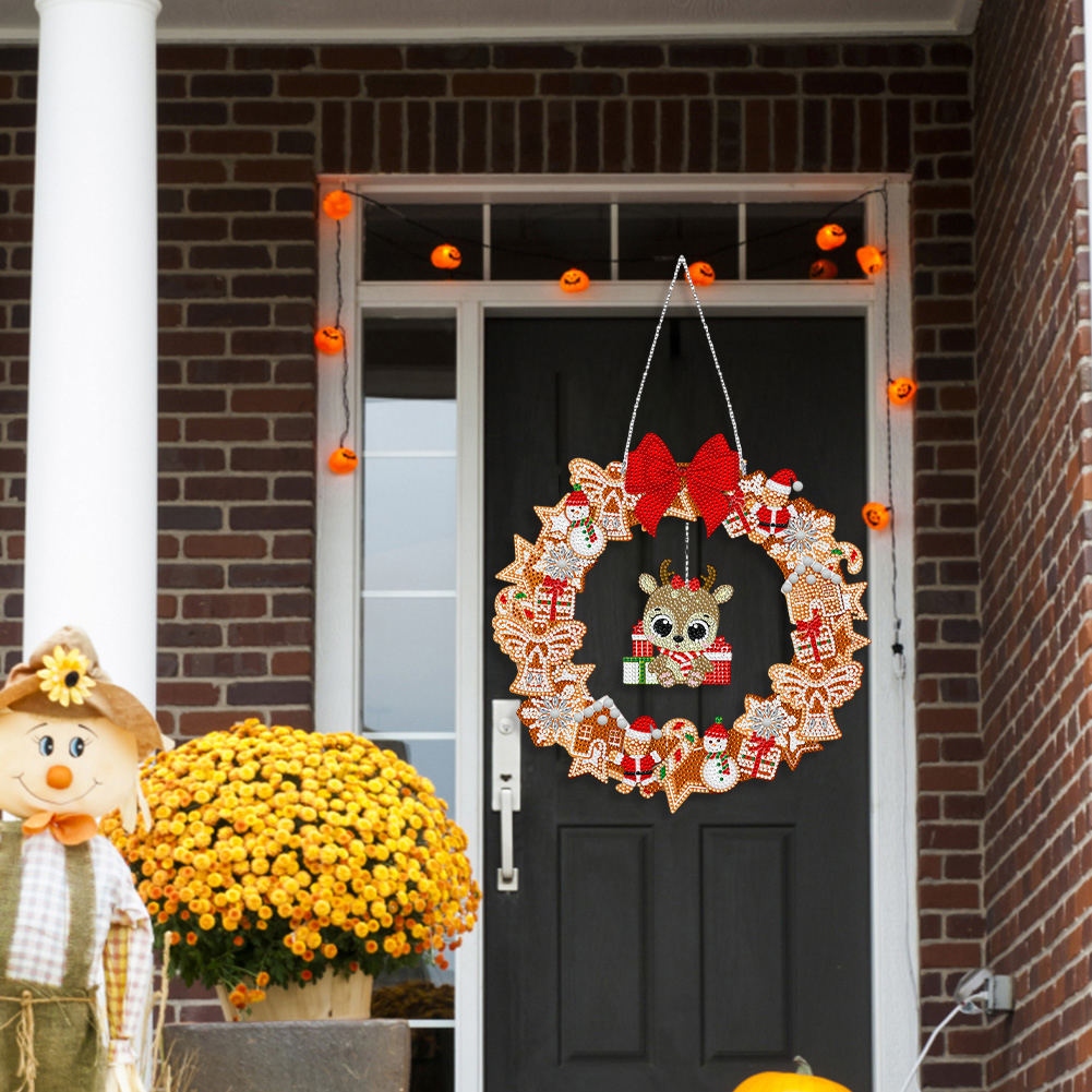 DIY Xmas Elk Acrylic Single Side Special Shaped Diamond Painting Wreath Ornament with LED Light