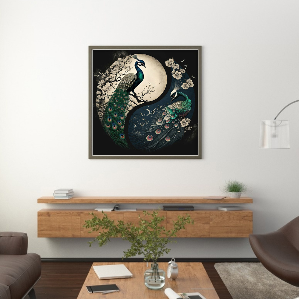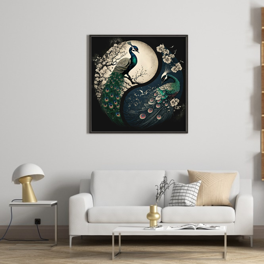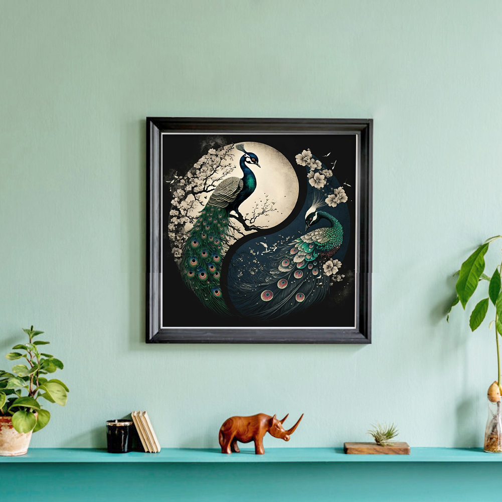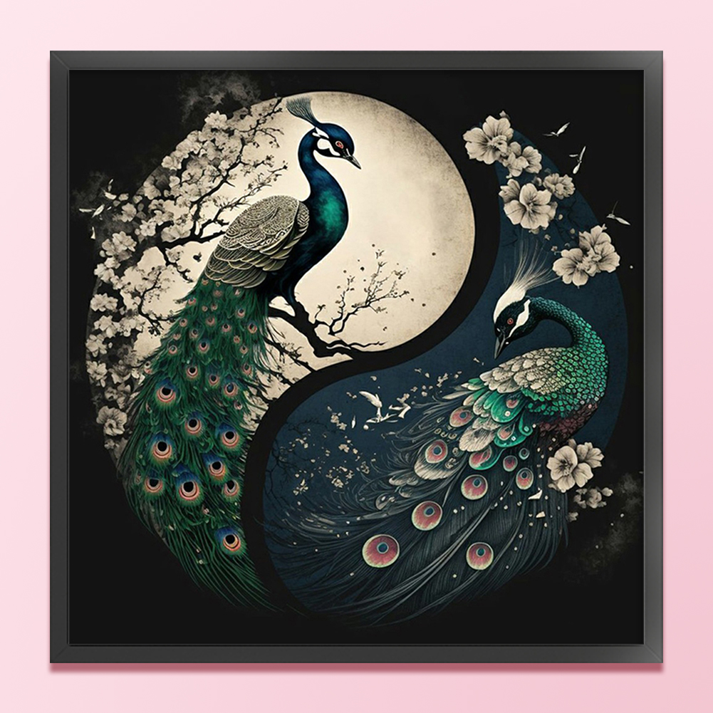 11CT Full Stamped Cross Stitch - Yin Yang Peacock(Canvas|40*40CM)