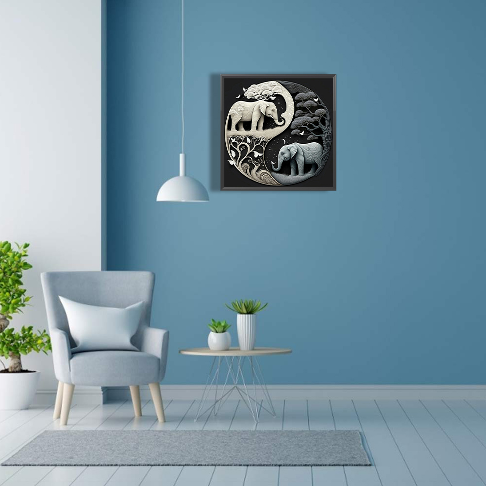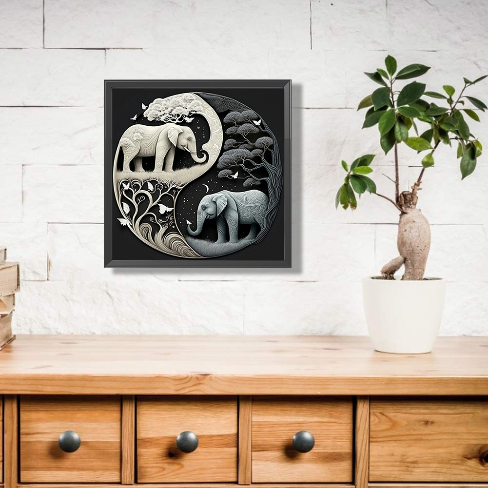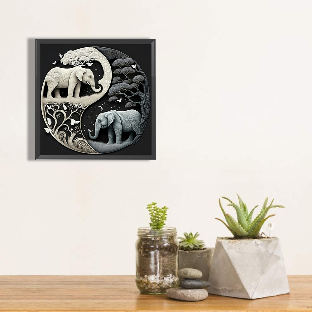 5D DIY Full Square Drill Diamond Painting Kit Elephant Yin Yang Symbol (F1289)