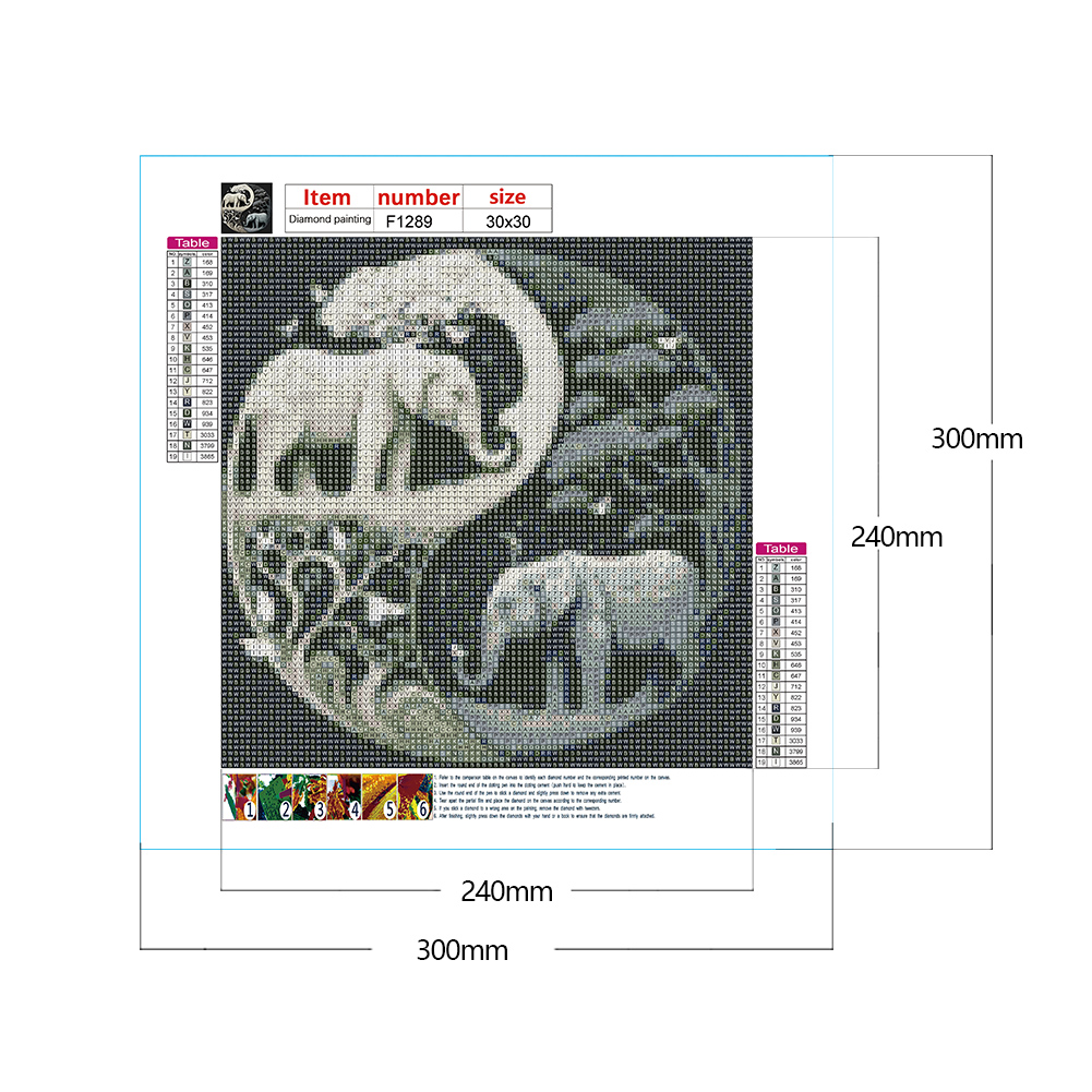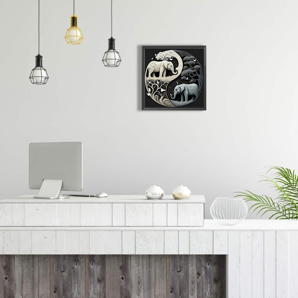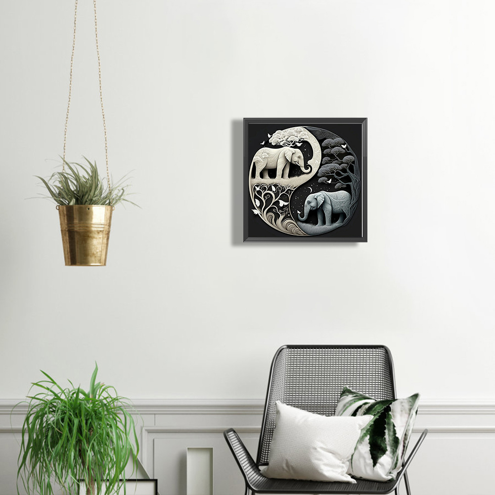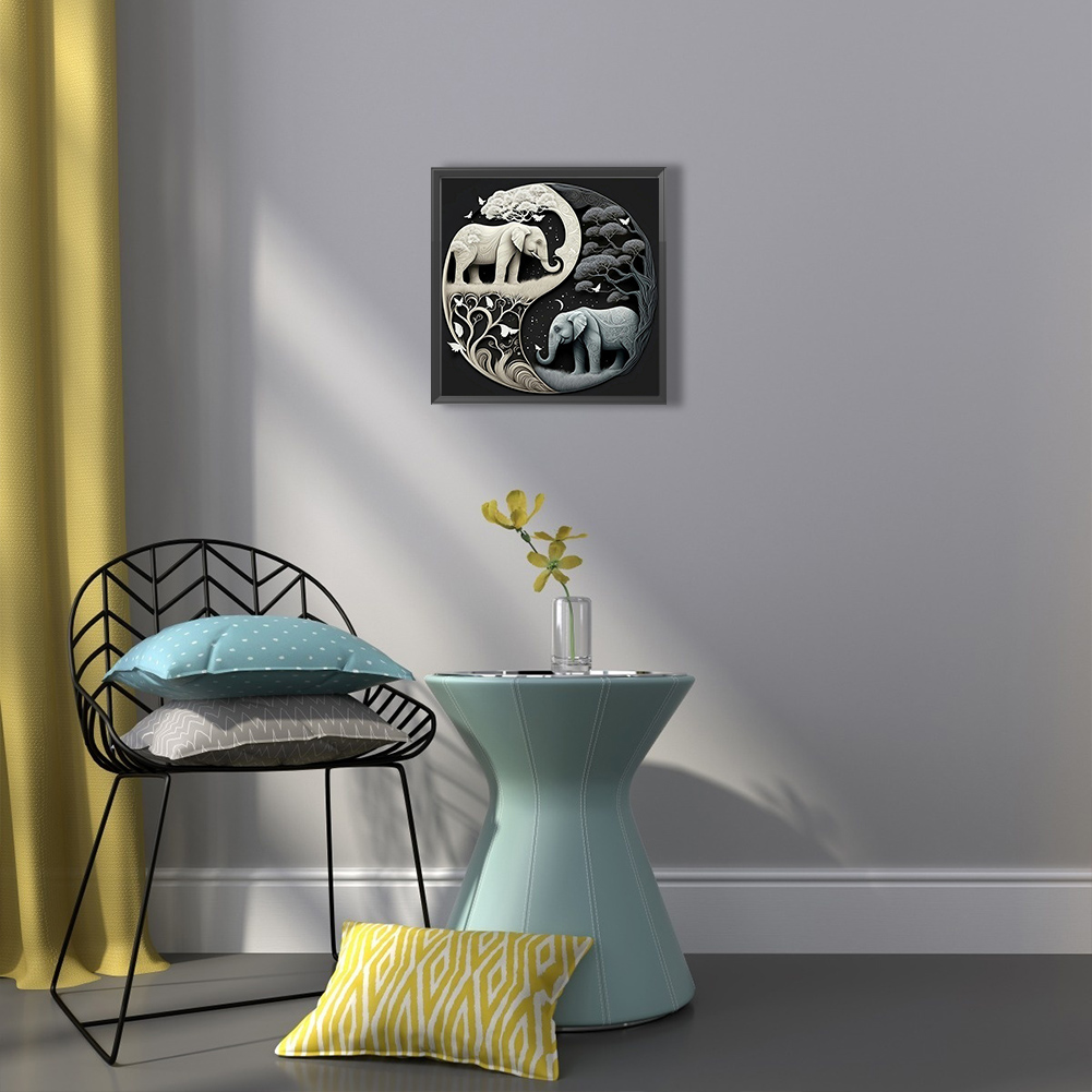 5D DIY Full Square Drill Diamond Painting Kit Elephant Yin Yang Symbol (F1289)