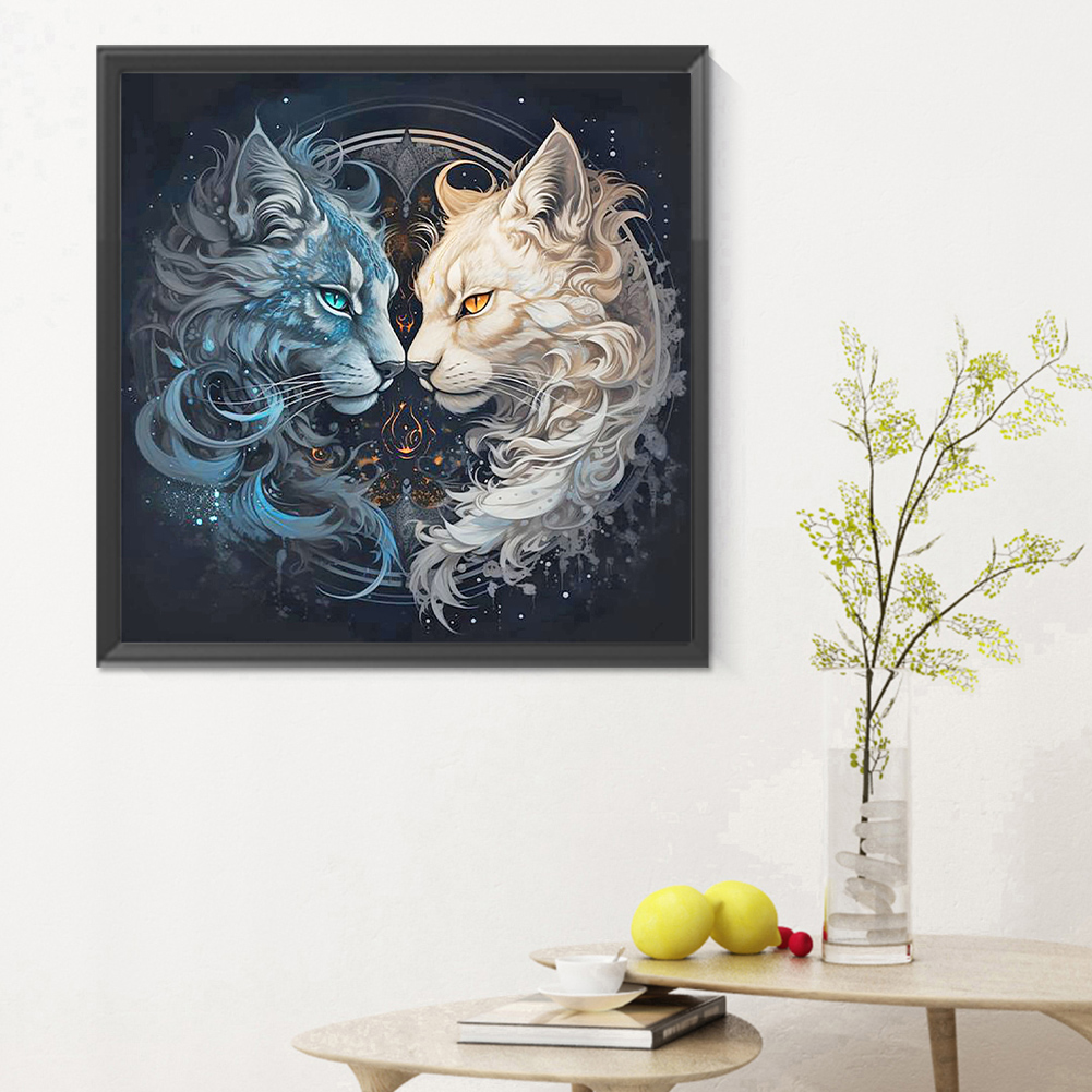 Diamond Painting - Full Round Drill - Yin Yang Cat(Canvas|30*30cm)