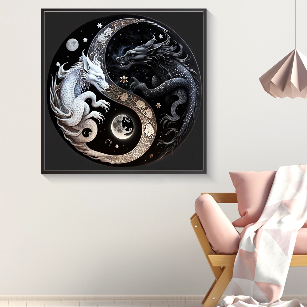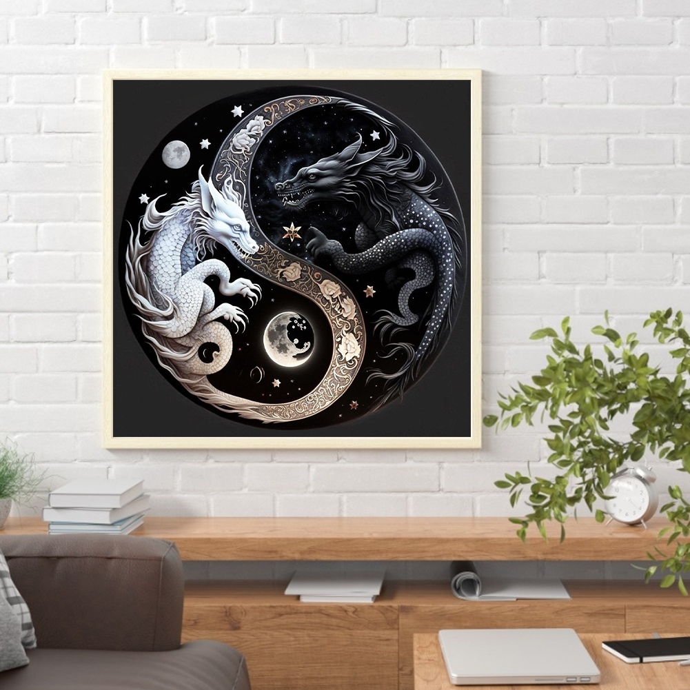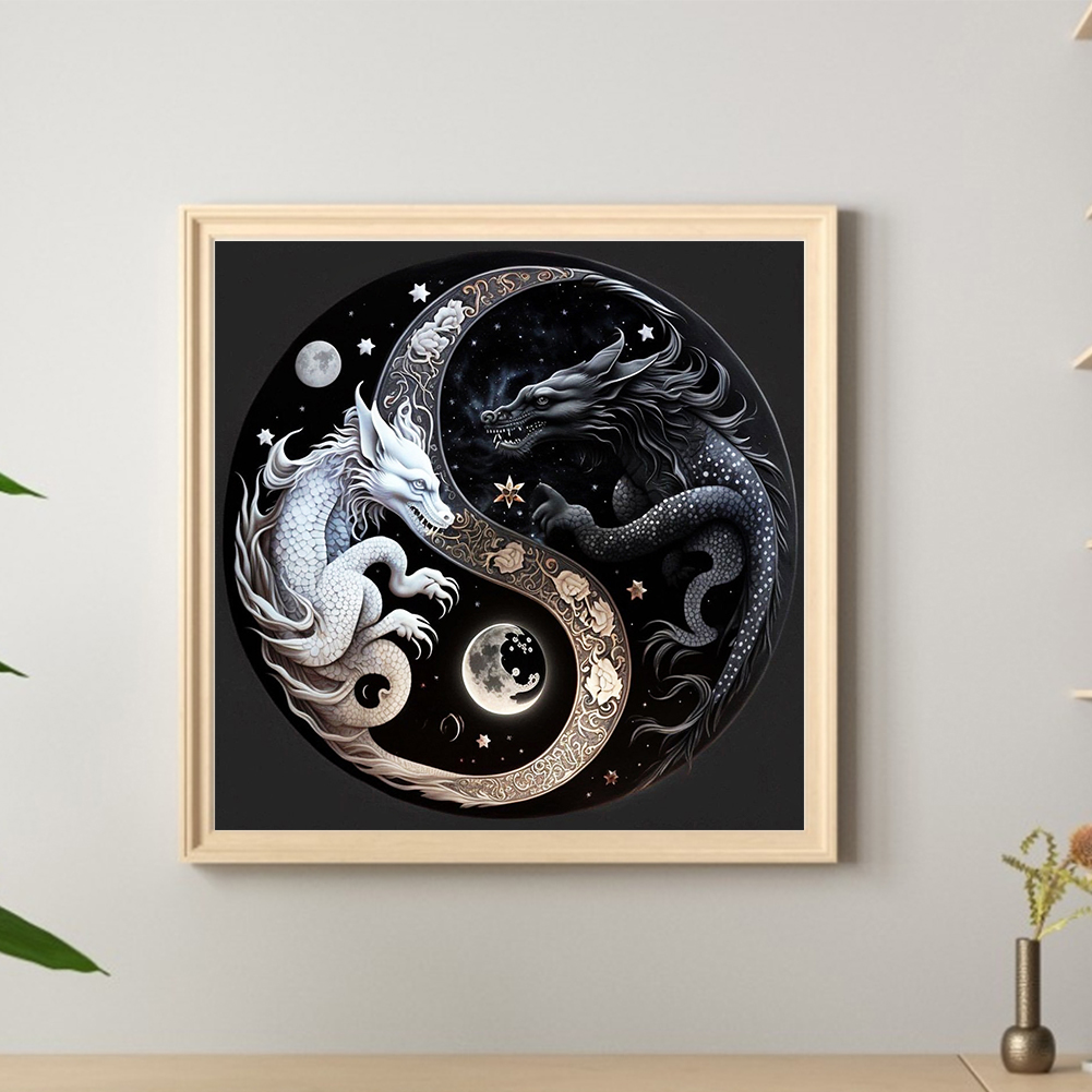 Diamond Painting - Full Round Drill - Yin Yang Dragon(Canvas|30*30cm)
