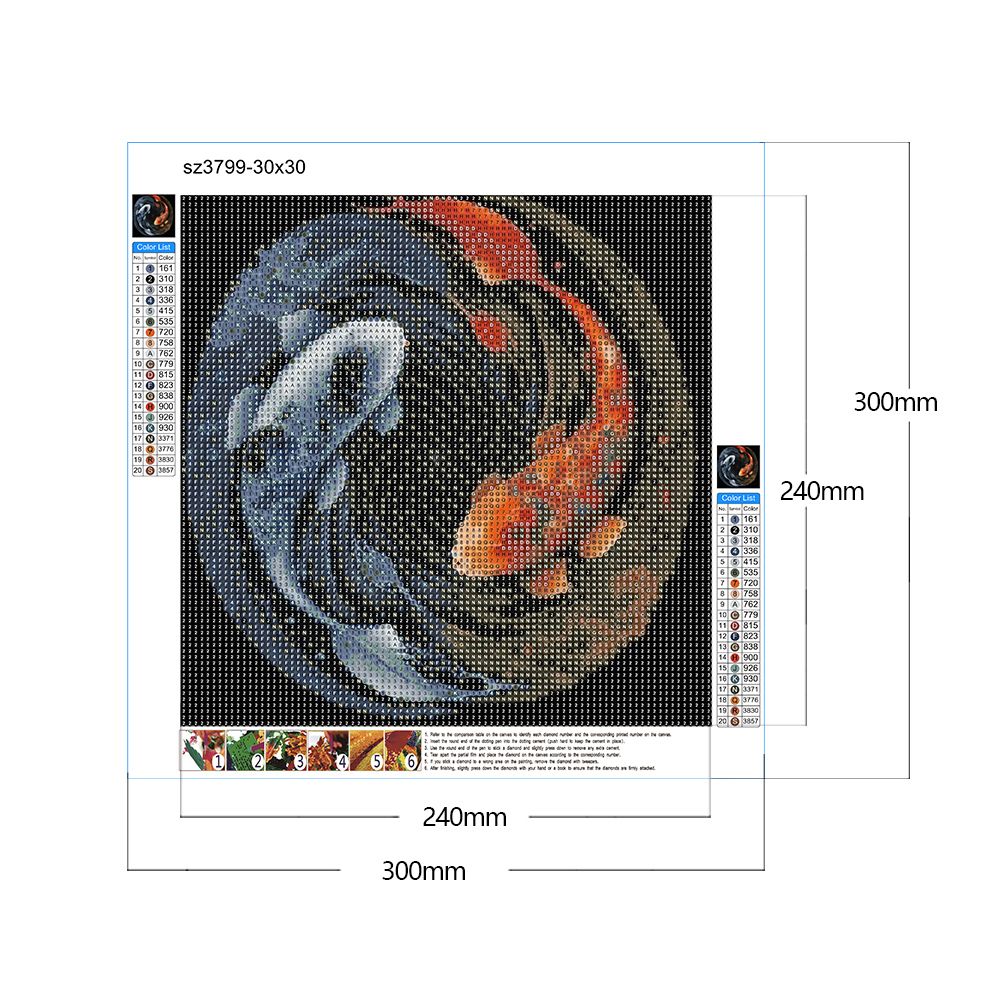 Diamond Painting - Full Round Drill - Yin Yang Fish(30*30cm)