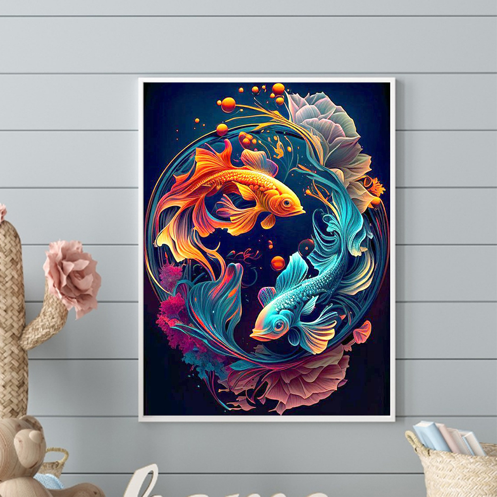 Diamond Painting - Full Round Drill - Yin Yang Fish(Canvas|30*40cm)