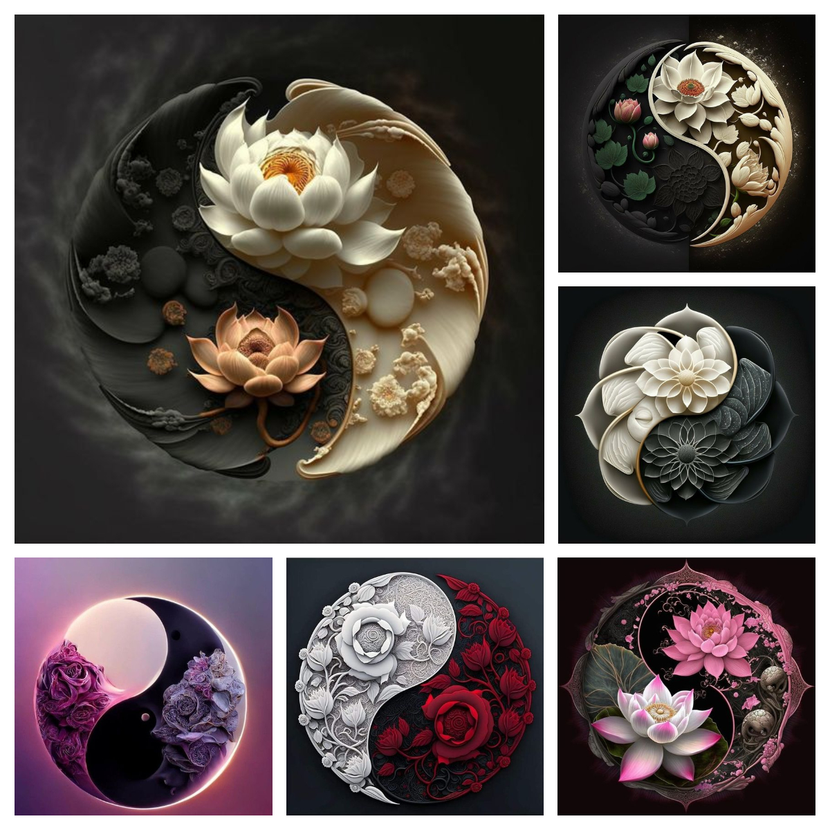 Diamond Painting - Full Round/Square Drill - Yin Yang Flower(30*30 - 50*50cm)