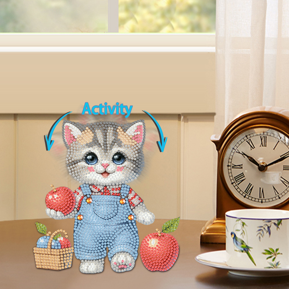 2D Flat Cat DIY Shaking Head Cat Apple Diamond Painting Desktop Decorations