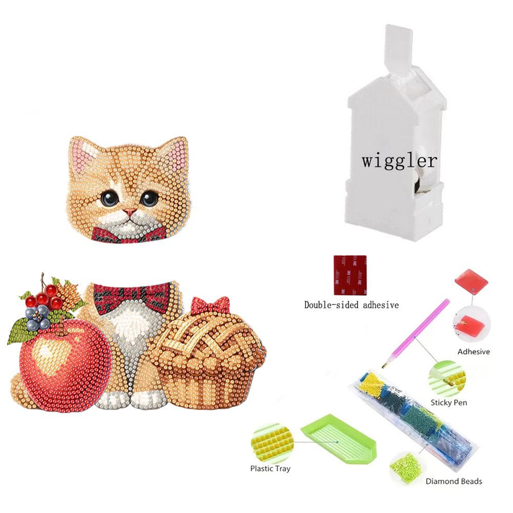 2D Flat Cat DIY Shaking Head Cat Food Diamond Painting Desktop Decorations