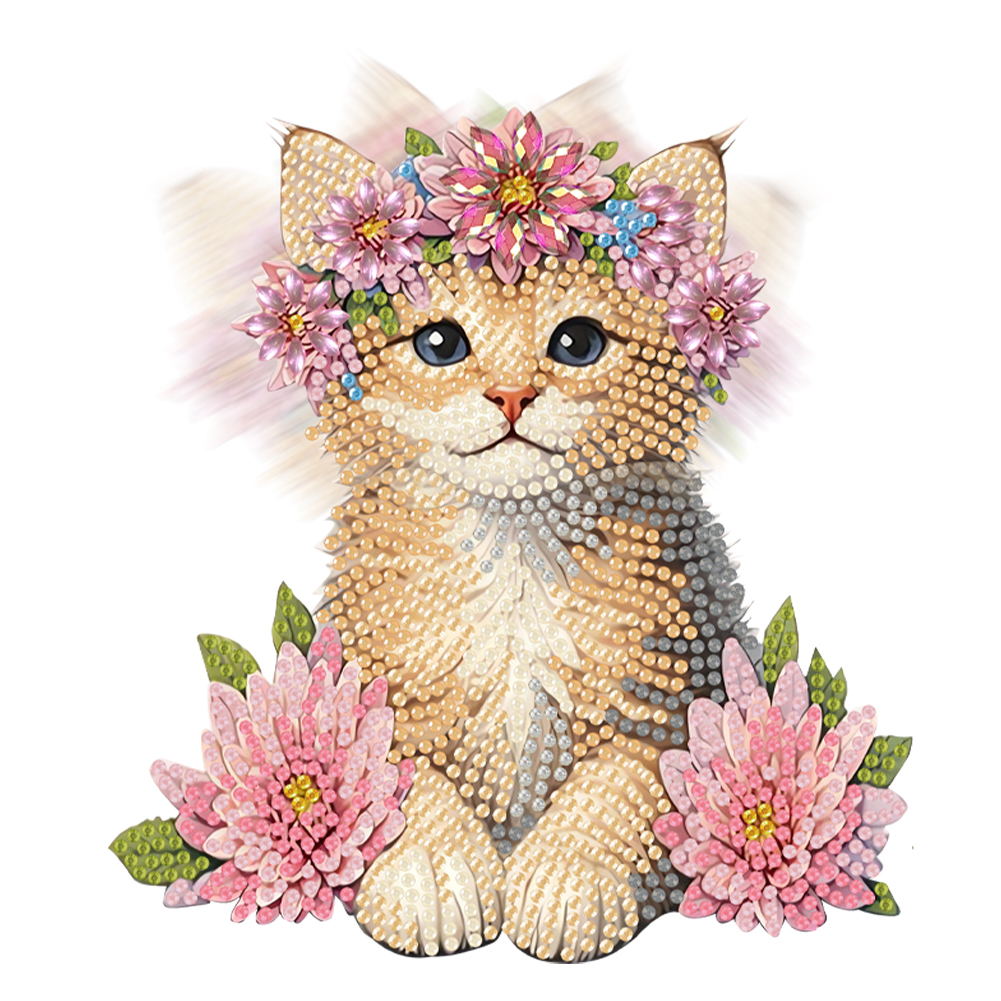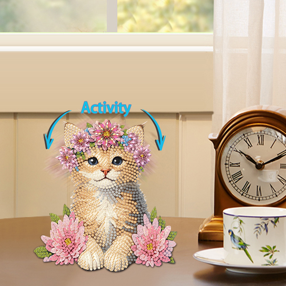 2D Flat Cat DIY Shaking Head Cat Pink Flower Diamond Painting Desktop Decoration