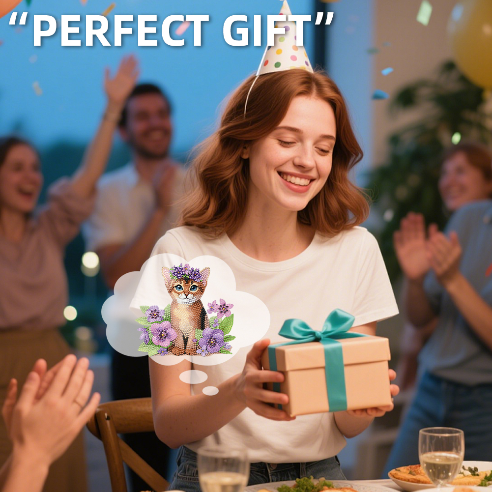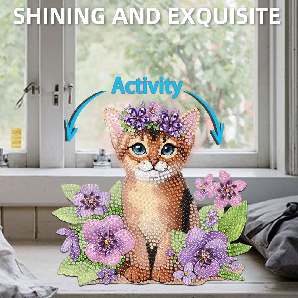 2D Flat Cat DIY Shaking Head Cat Purple Flower Diamond Painting Desktop Decor
