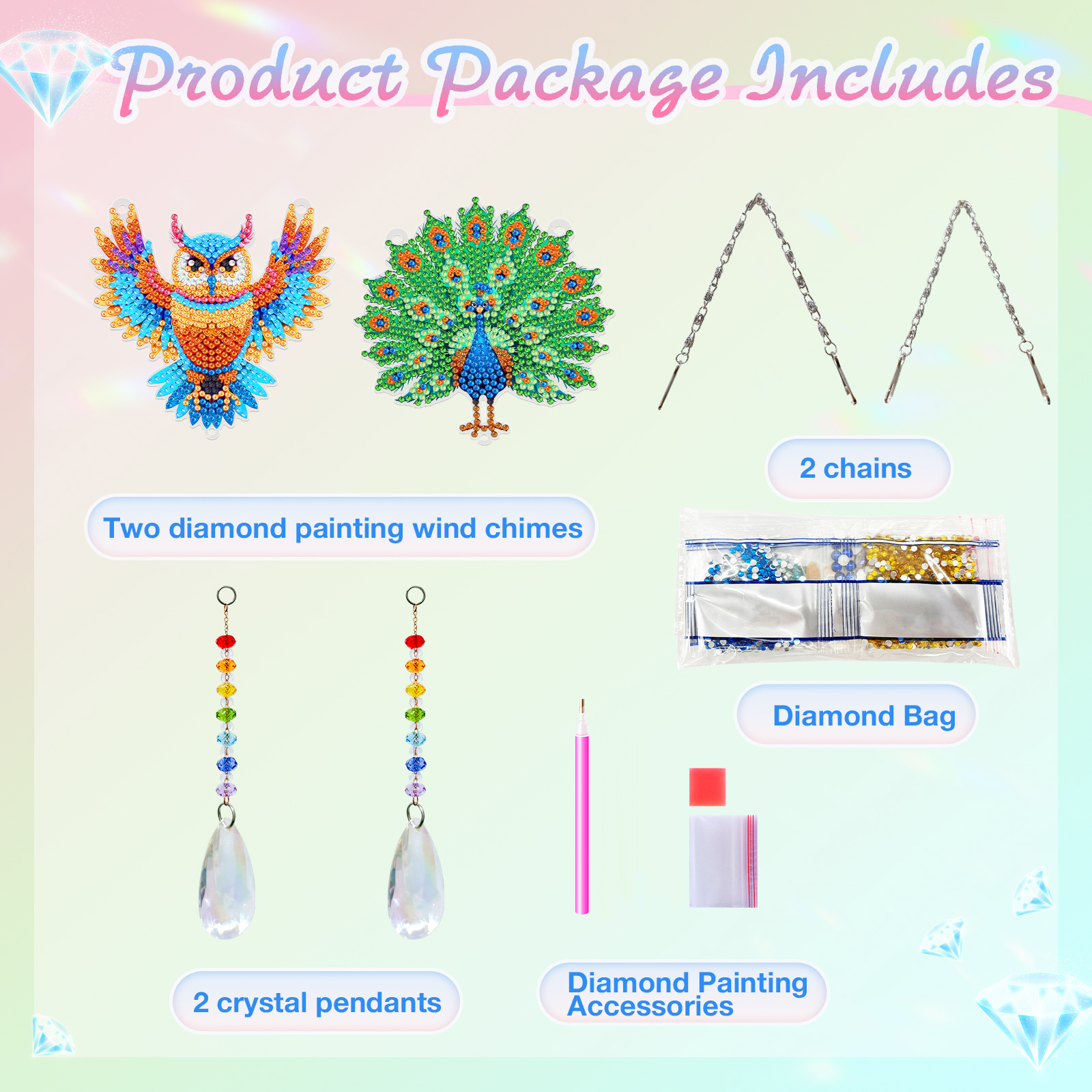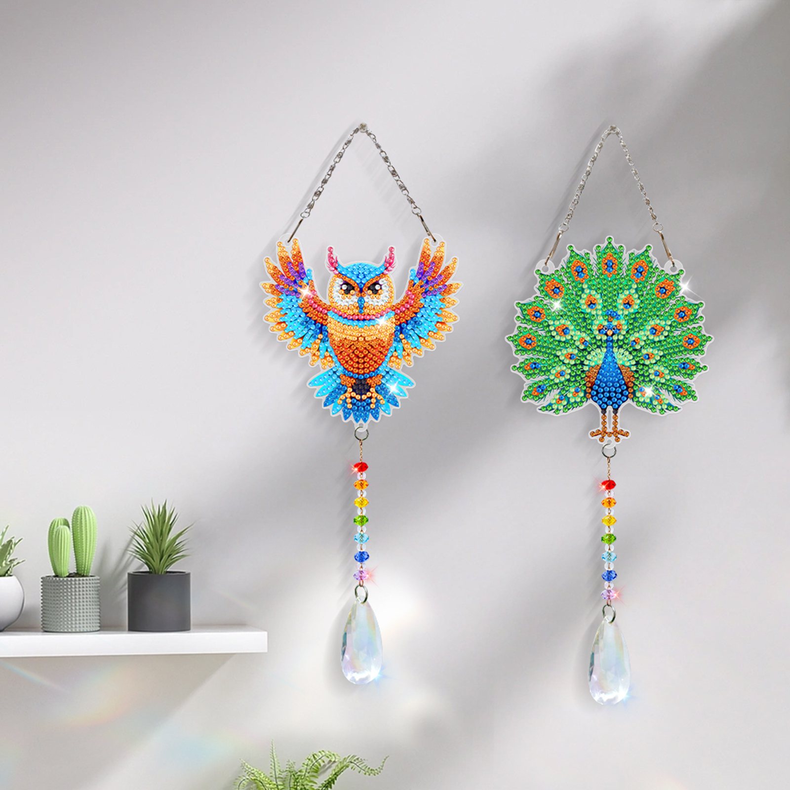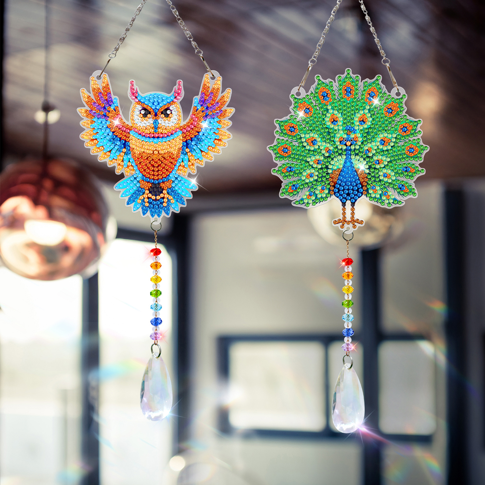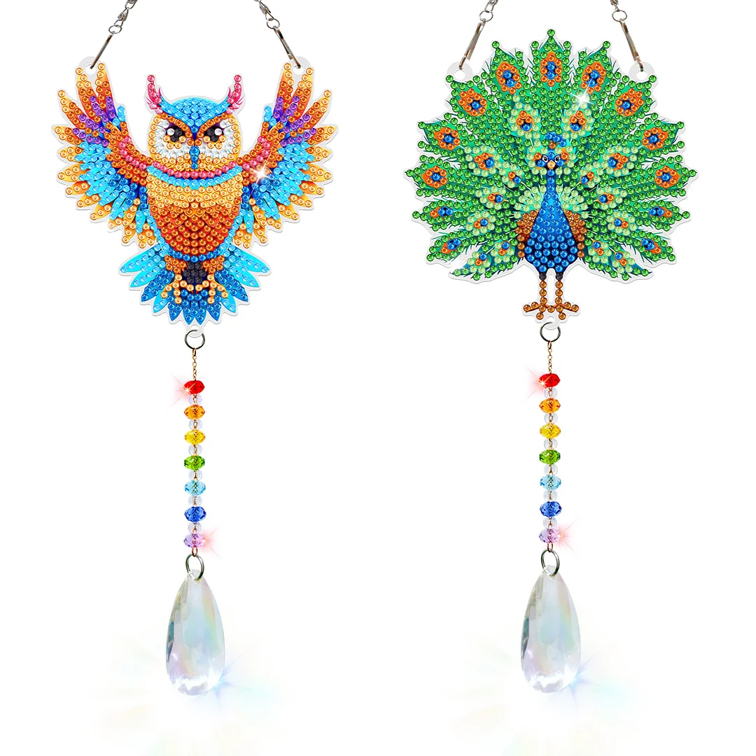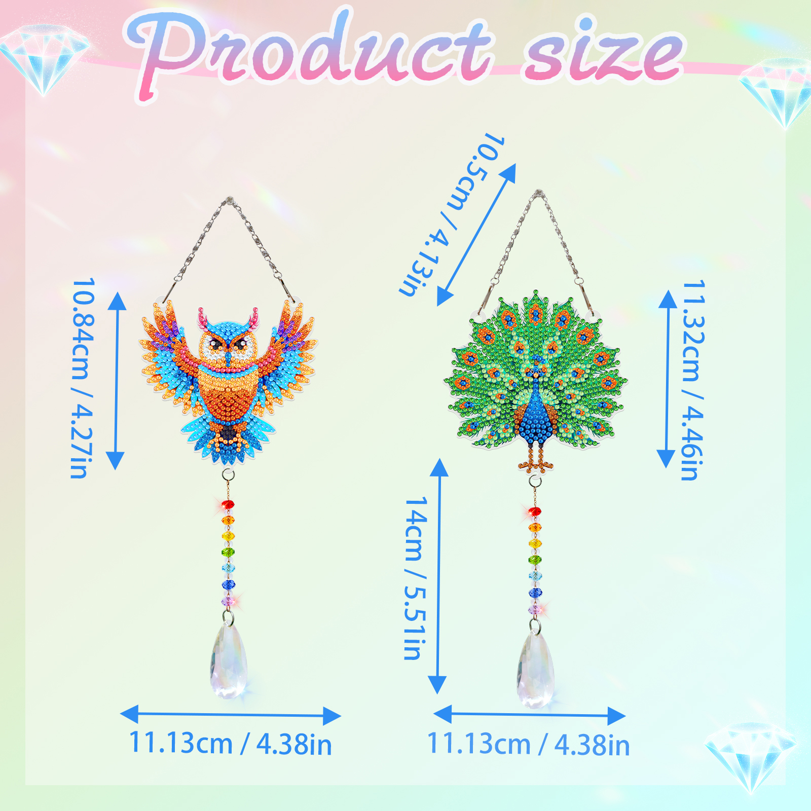 2Pcs Owl Peacock DIY Double-Sided Diamond Painting Hanging Kits Diamond Painting Suncatcher Craft Kit for Home Garden Wall Decor Gift