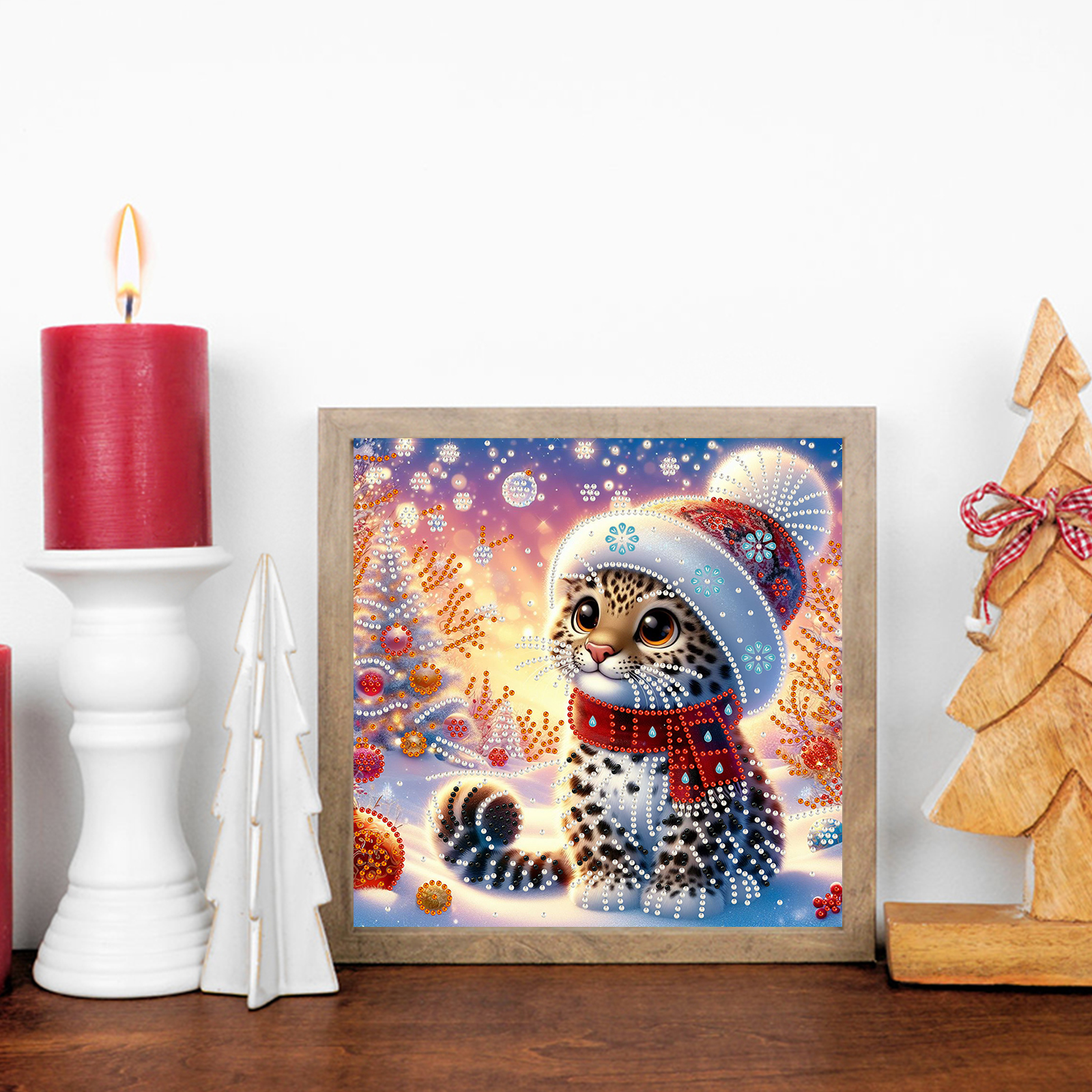 Christmas Leopard - Diamond Painting - Partial Special Shaped Drill(Canvas|30*30cm)