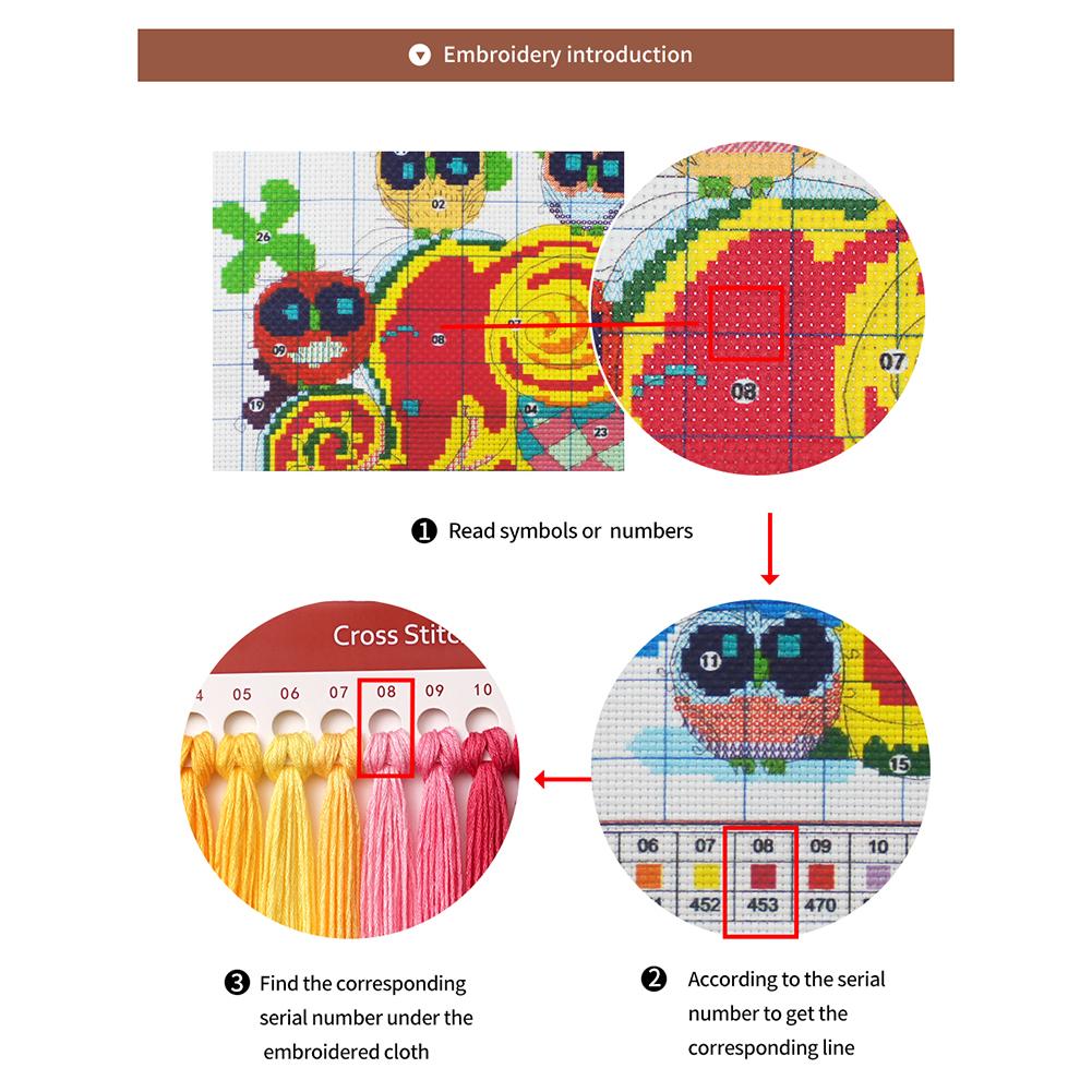 1. Guide graphics composed of different numbers and symbols. Tell you where to draw the grid and which color line should be used. All you have to do is follow the symbols on the paper and learn how to start counting.
