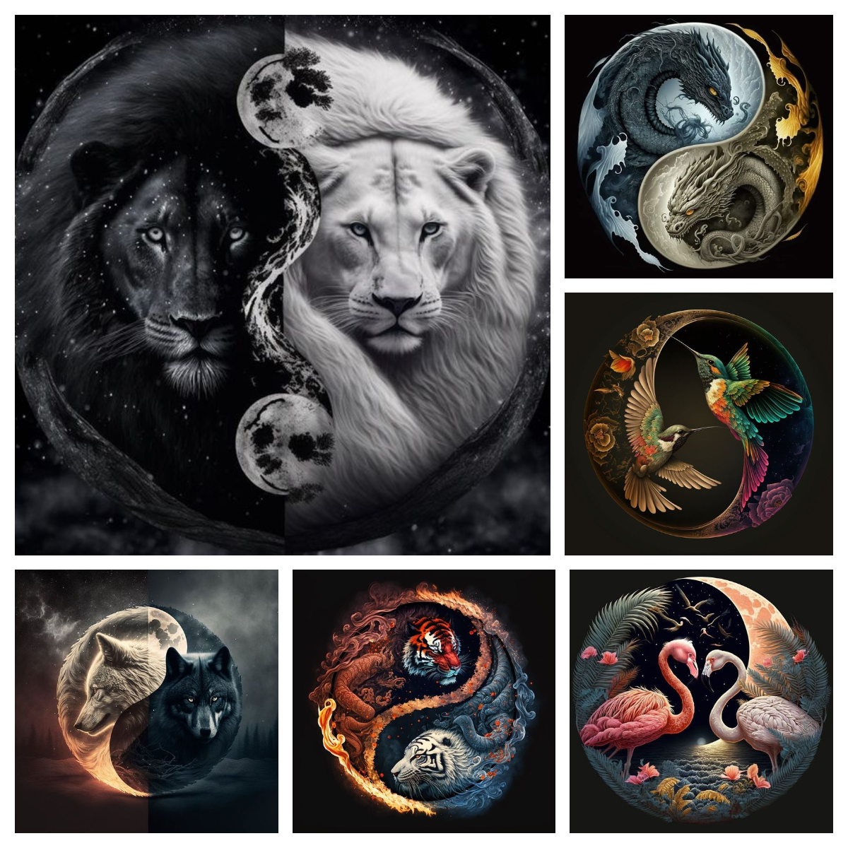 Diamond Painting - Full Round/Square Drill - Ying Yang Animals(30*30 - 50*50cm)