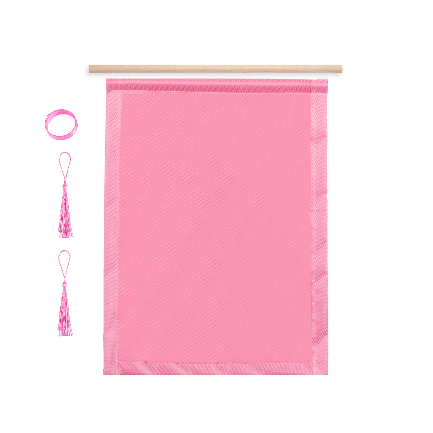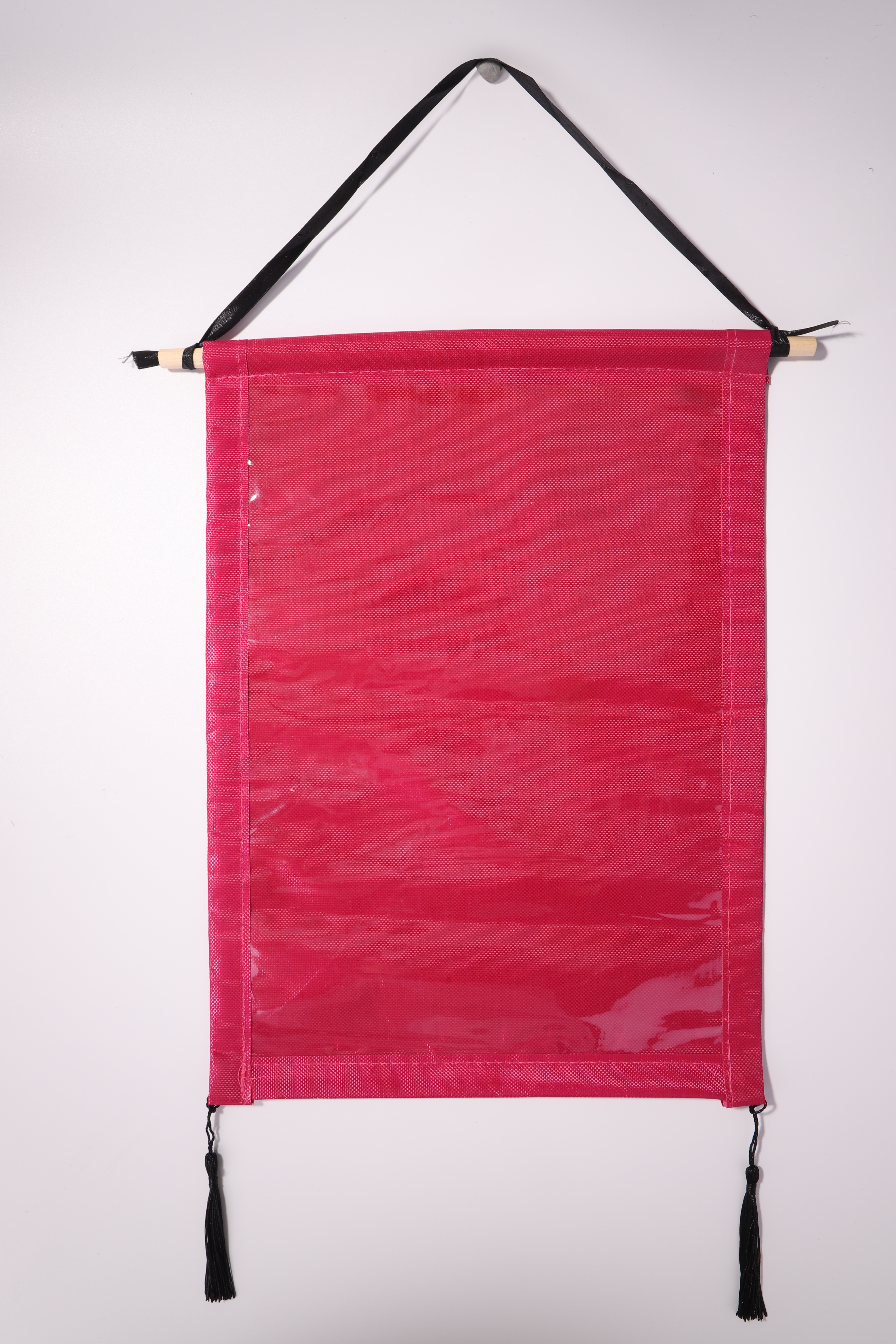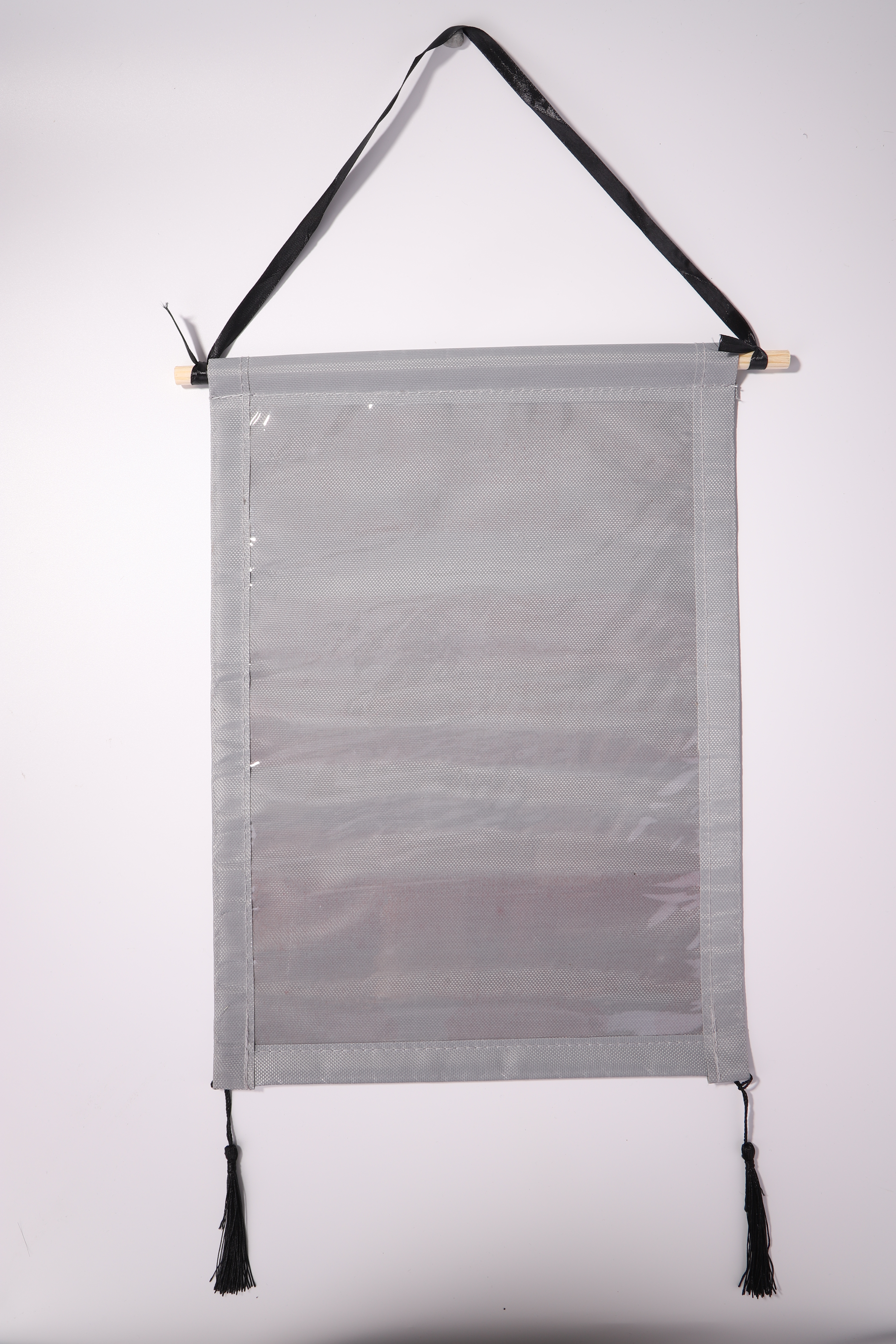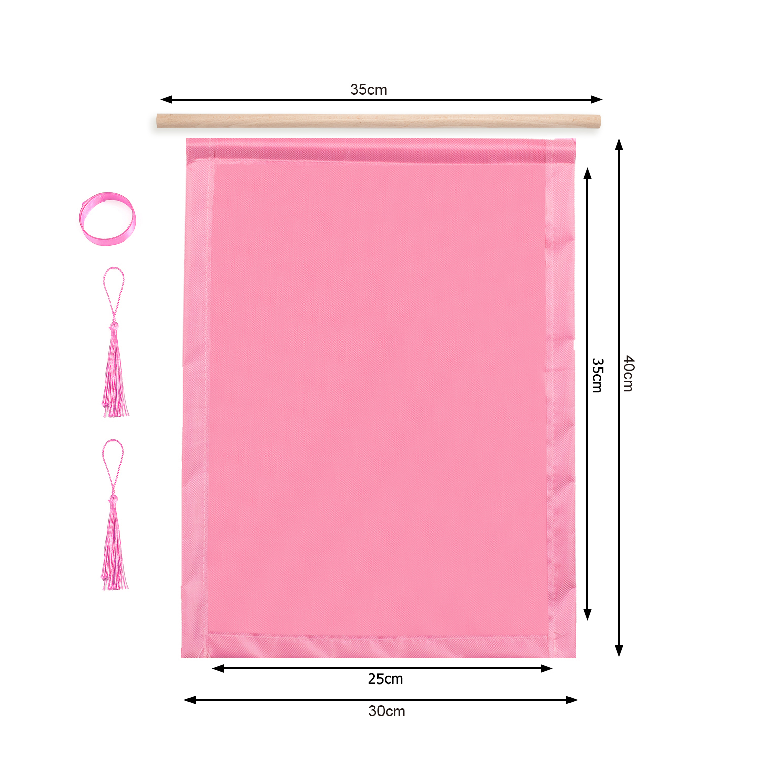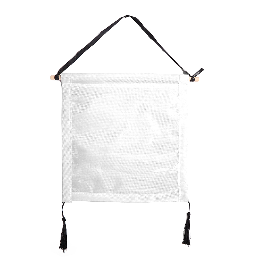 You only need to insert the wooden sticks into the hanger, fix the long ribbon on the two sides of the wooden stick, and fix the hanging ears on the two corners below the hanger.