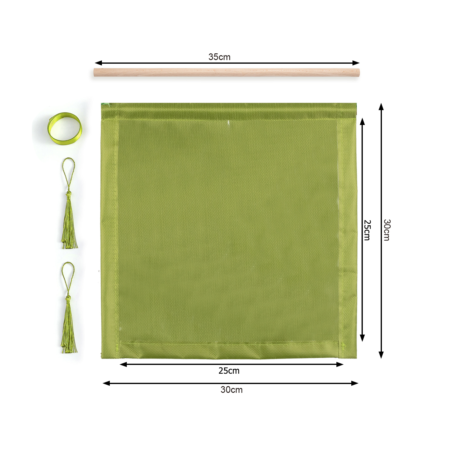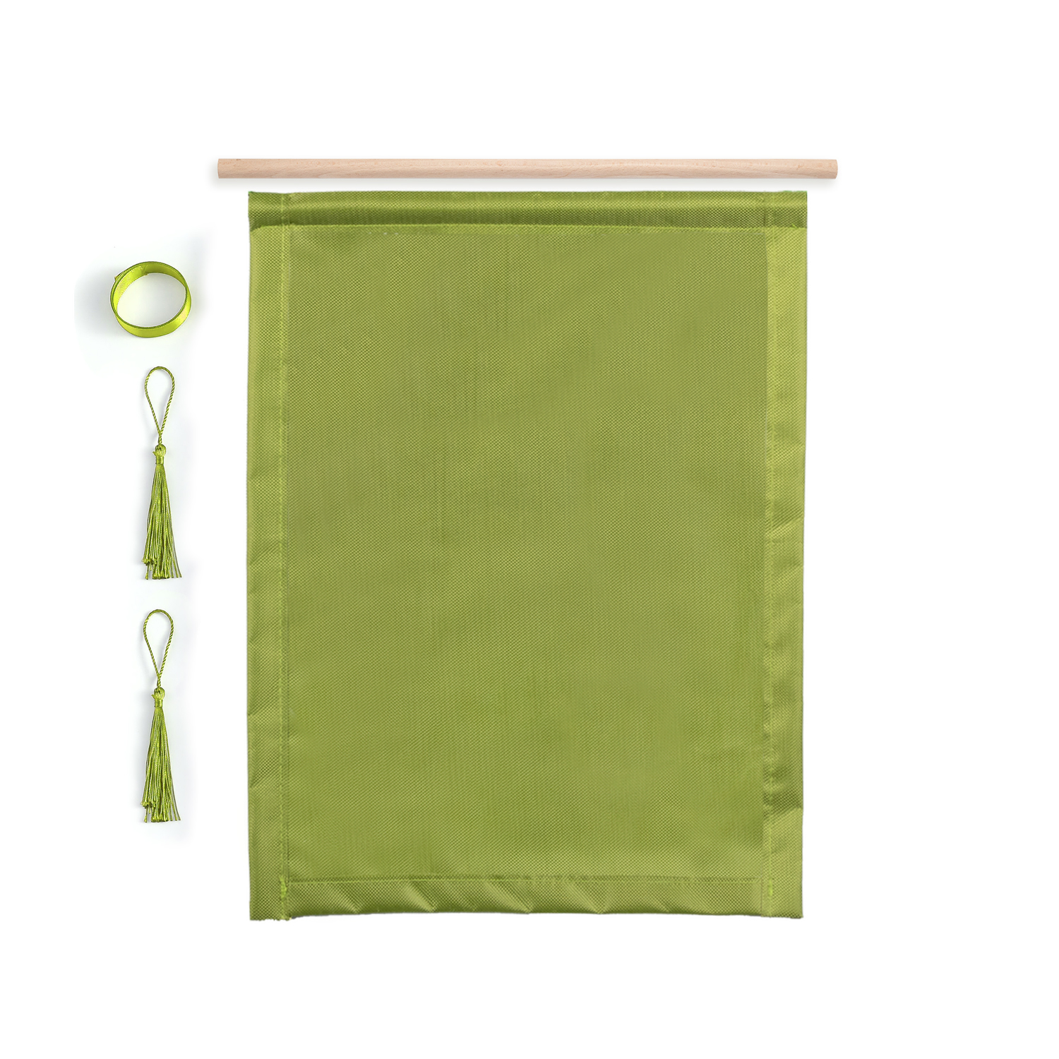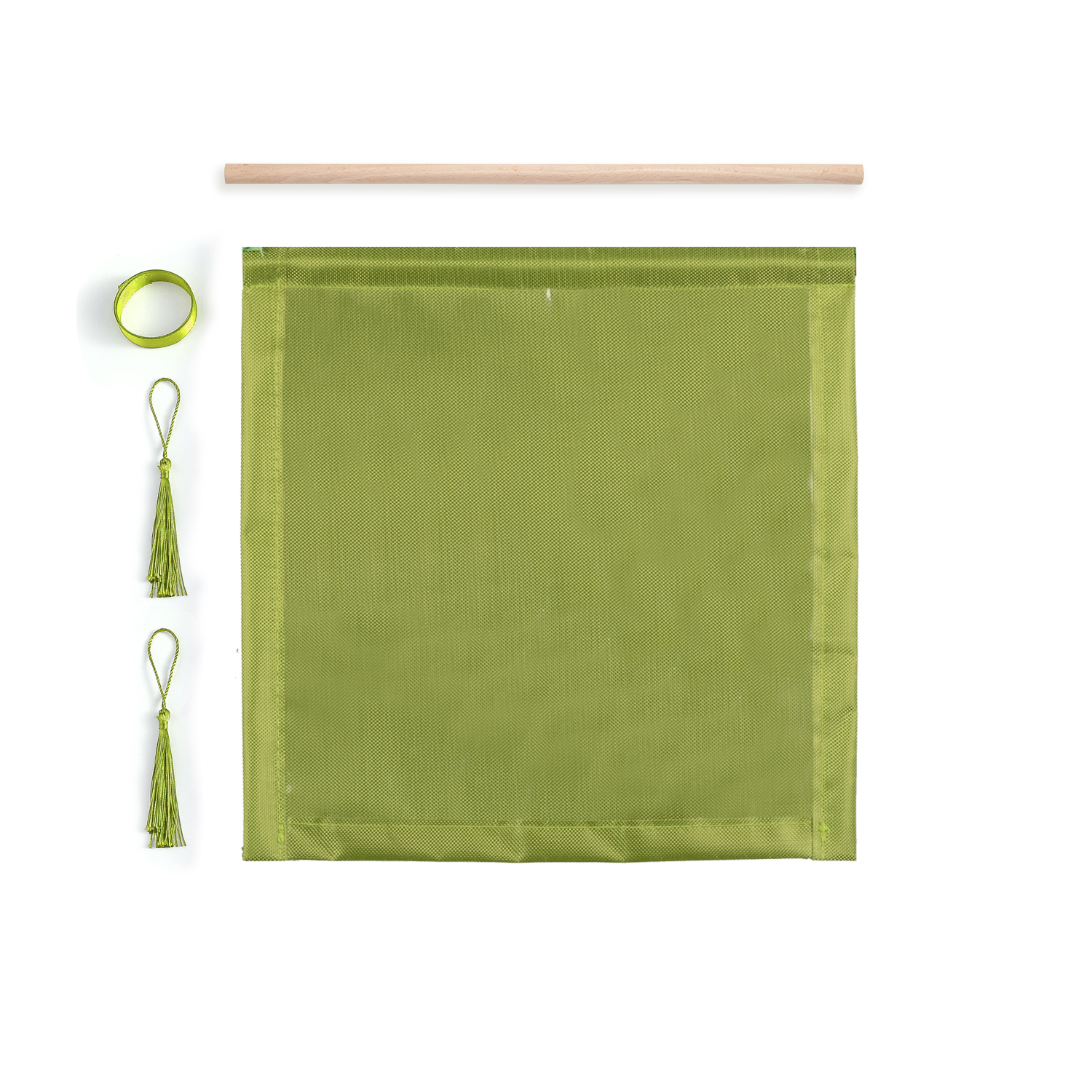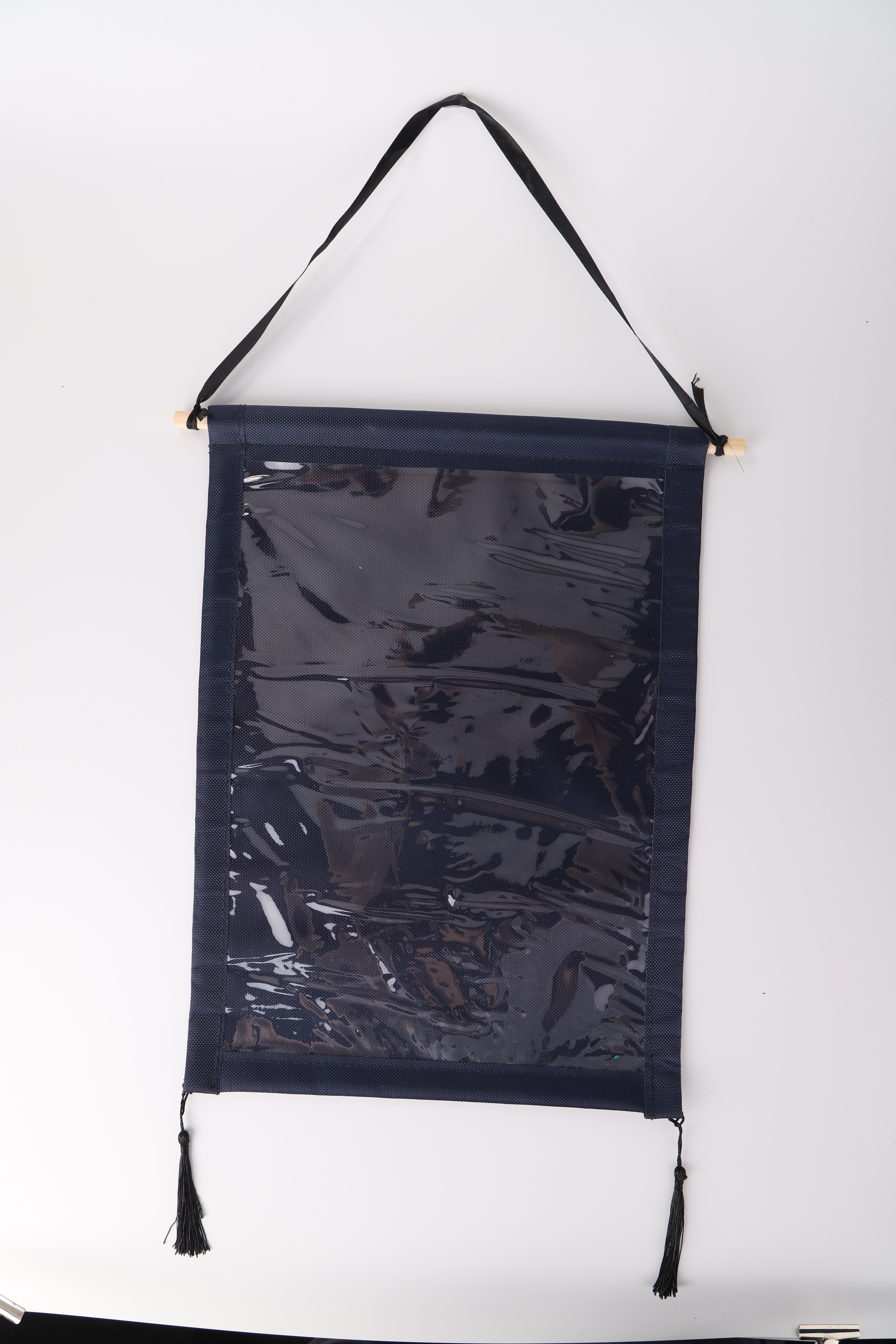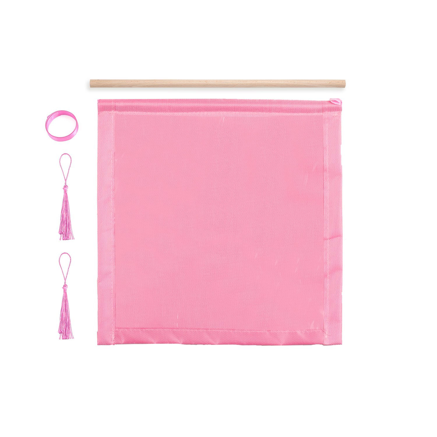 You only need to insert the wooden sticks into the hanger, fix the long ribbon on the two sides of the wooden stick, and fix the hanging ears on the two corners below the hanger.
