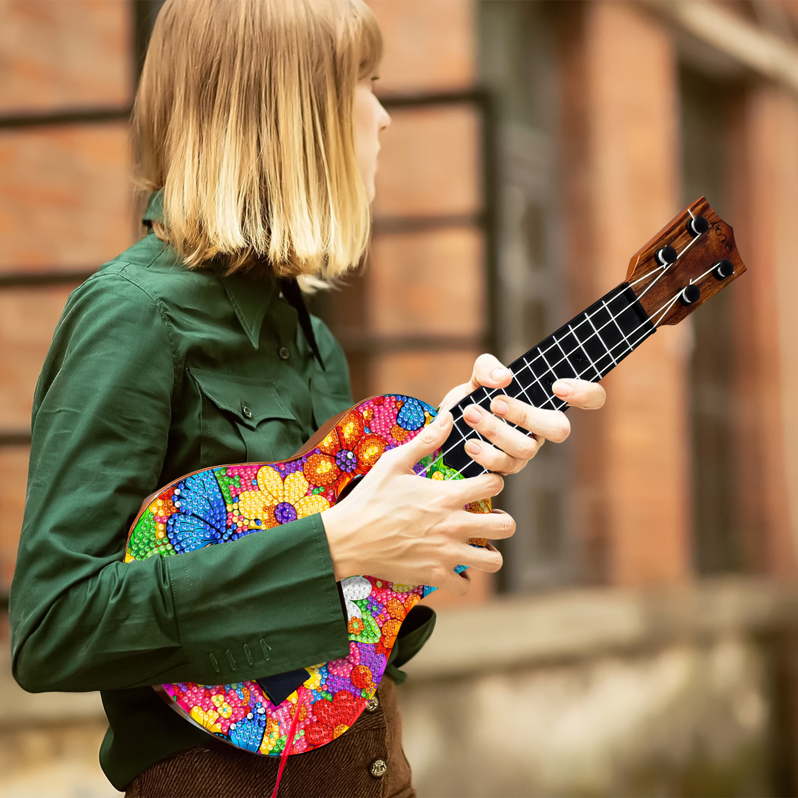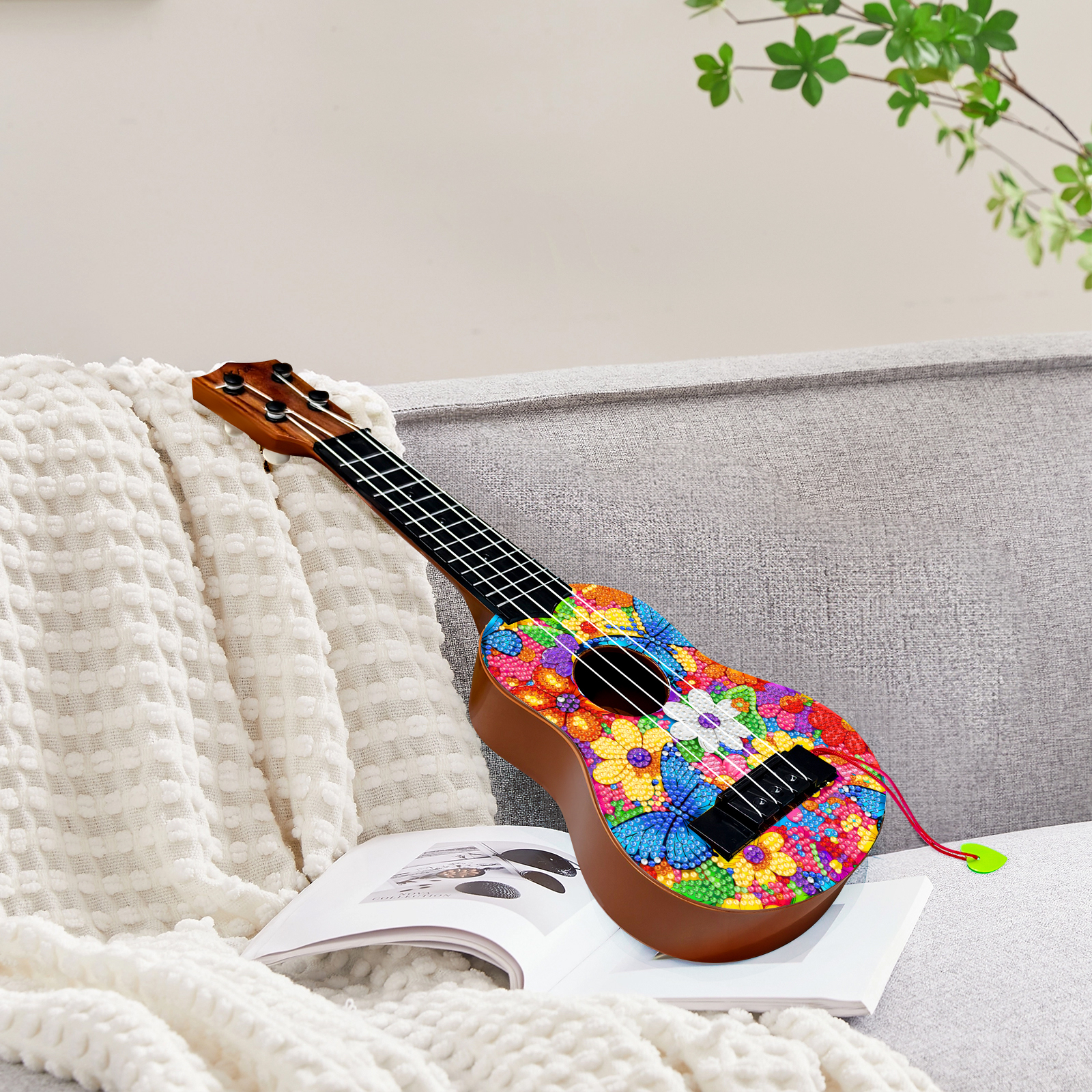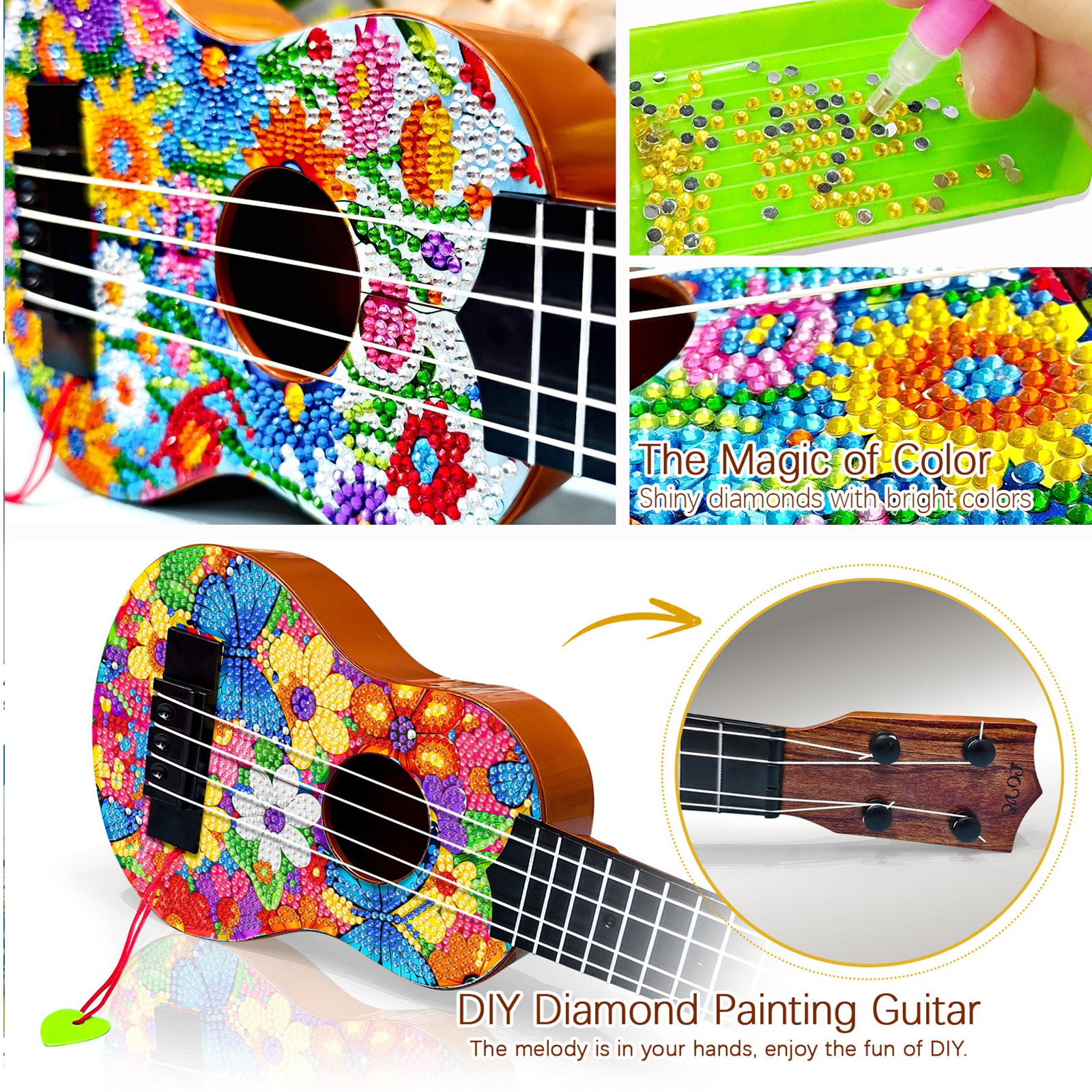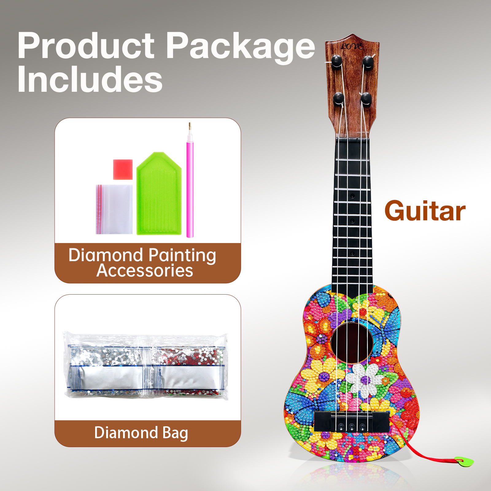 DIY Wooden Guitar Diamond Art Ornament Unique for Musicians (Flower Butterfly)