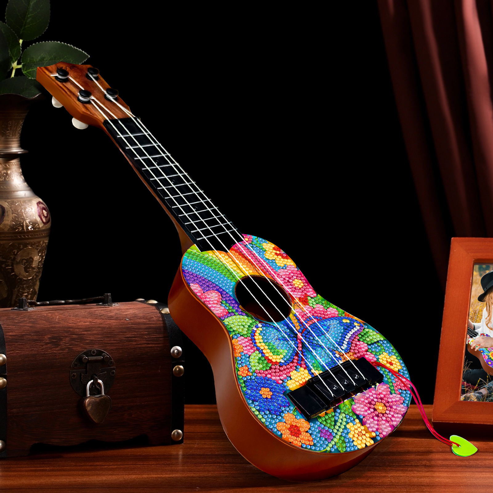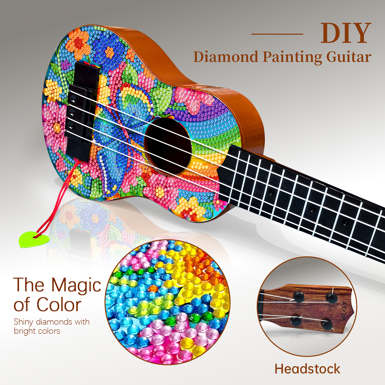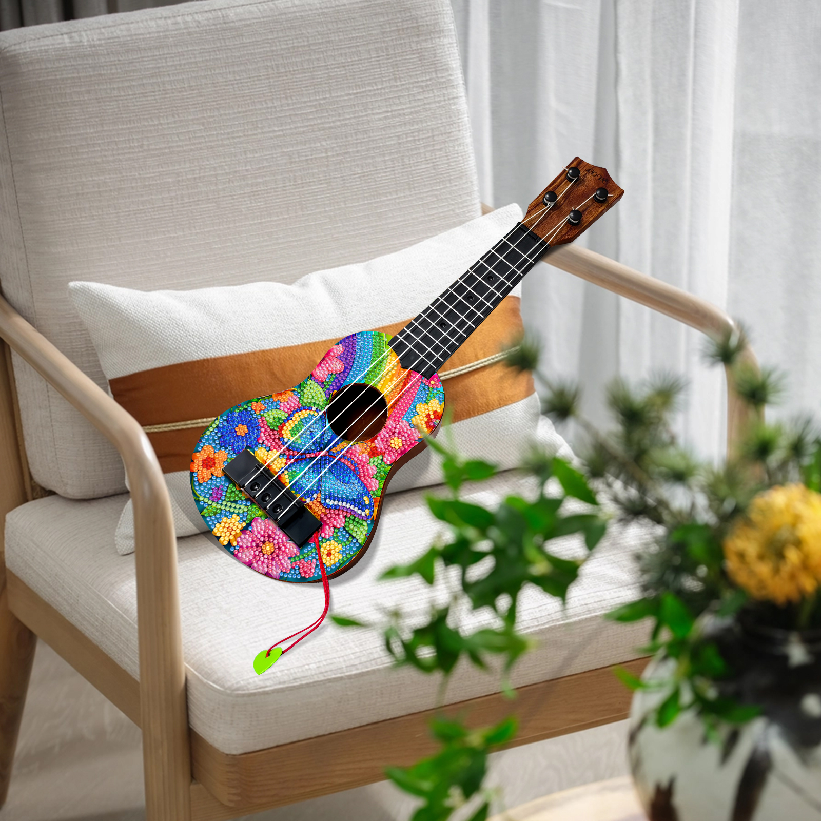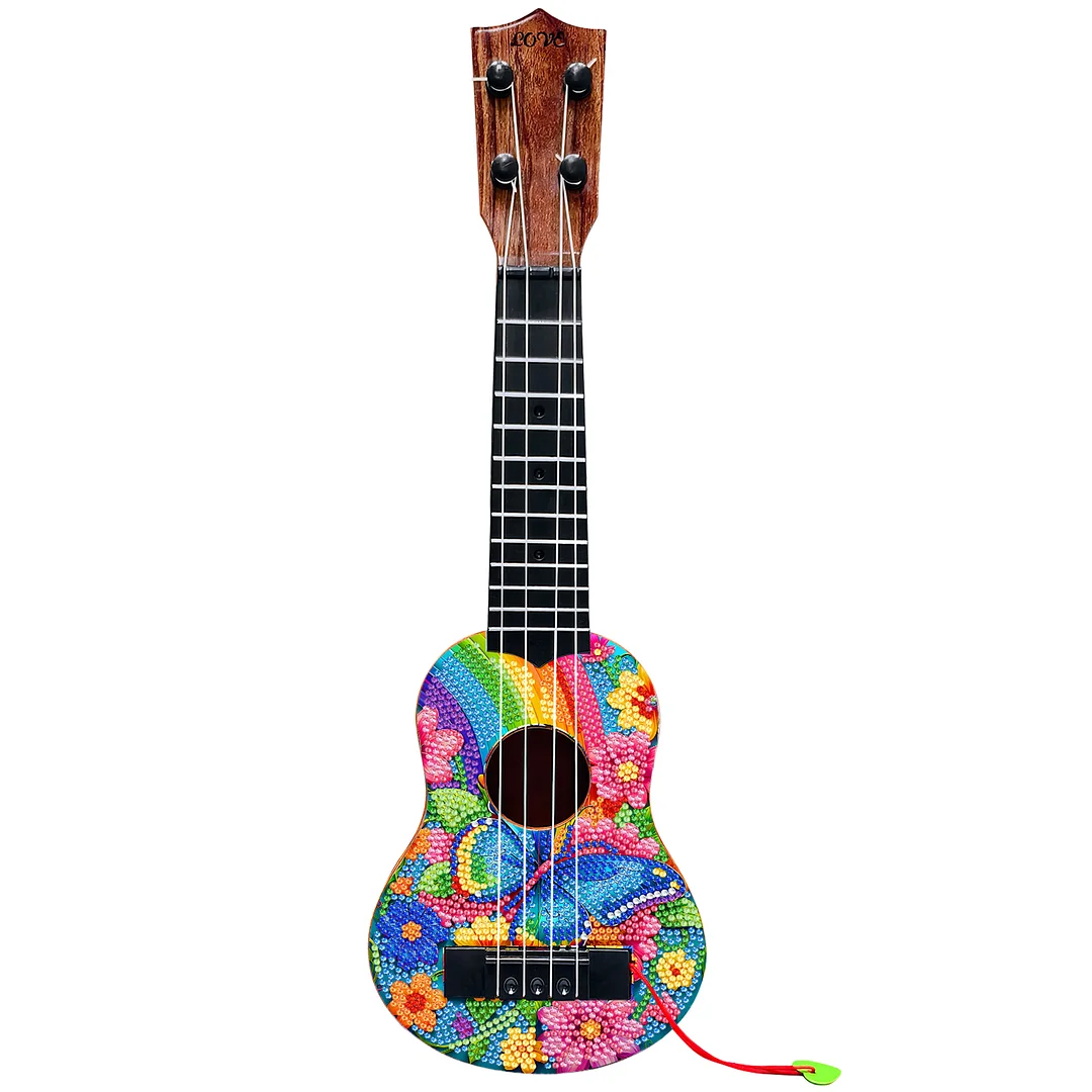 DIY Wooden Guitar Diamond Art Ornament Unique for Musicians (Rainbow Buttefly)