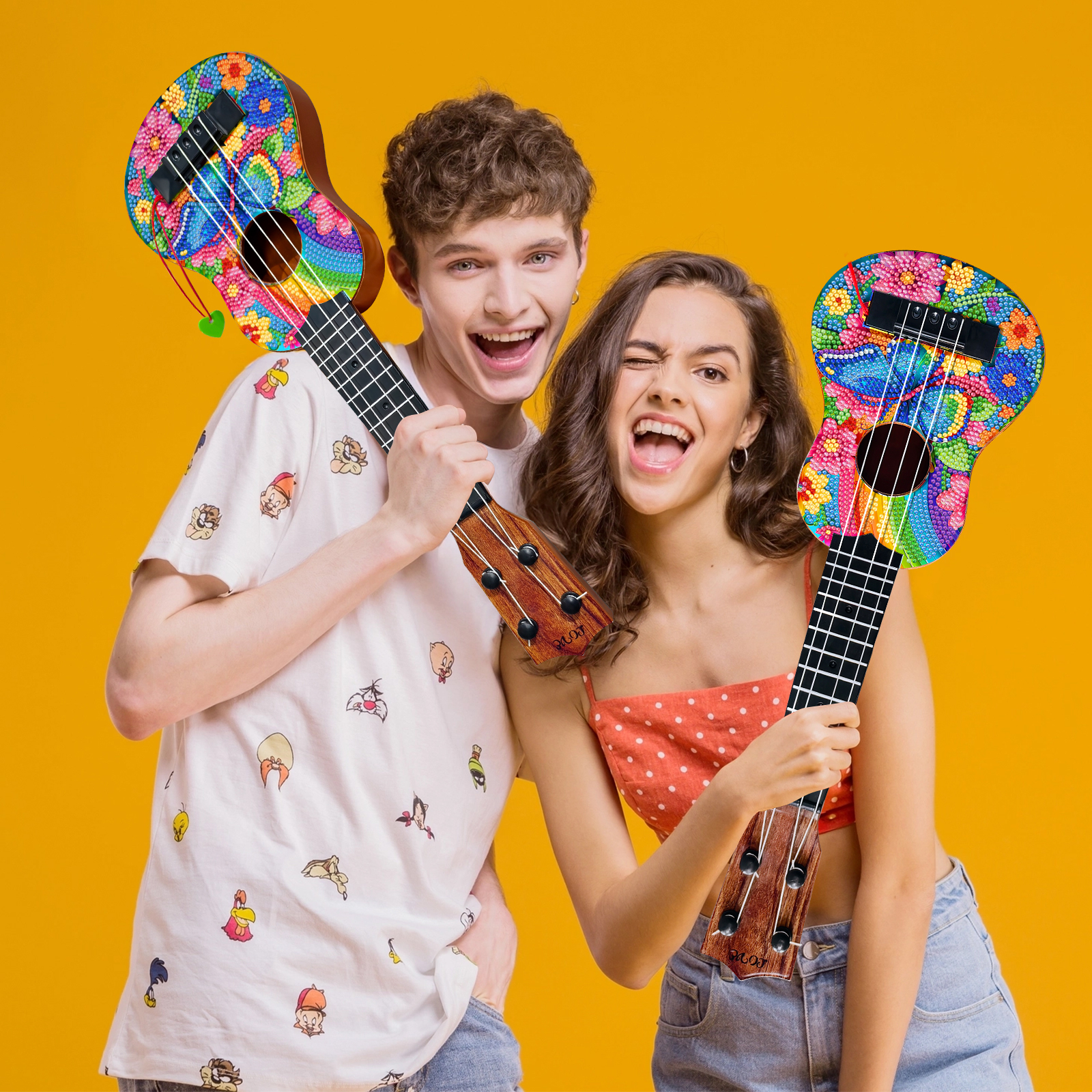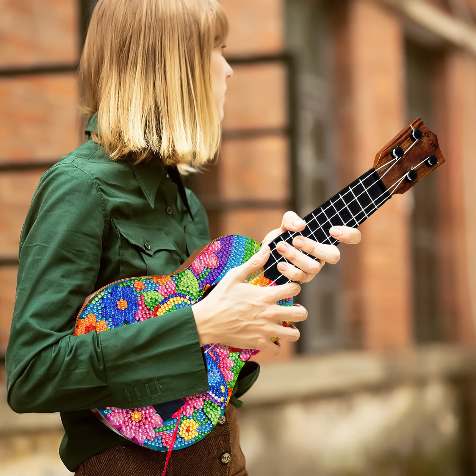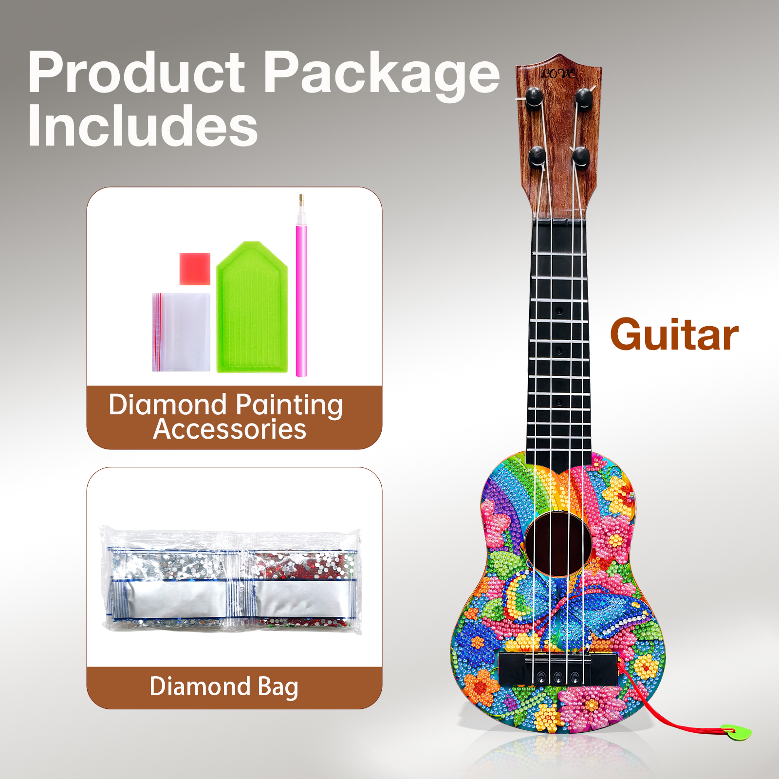 DIY Wooden Guitar Diamond Art Ornament Unique for Musicians (Rainbow Buttefly)