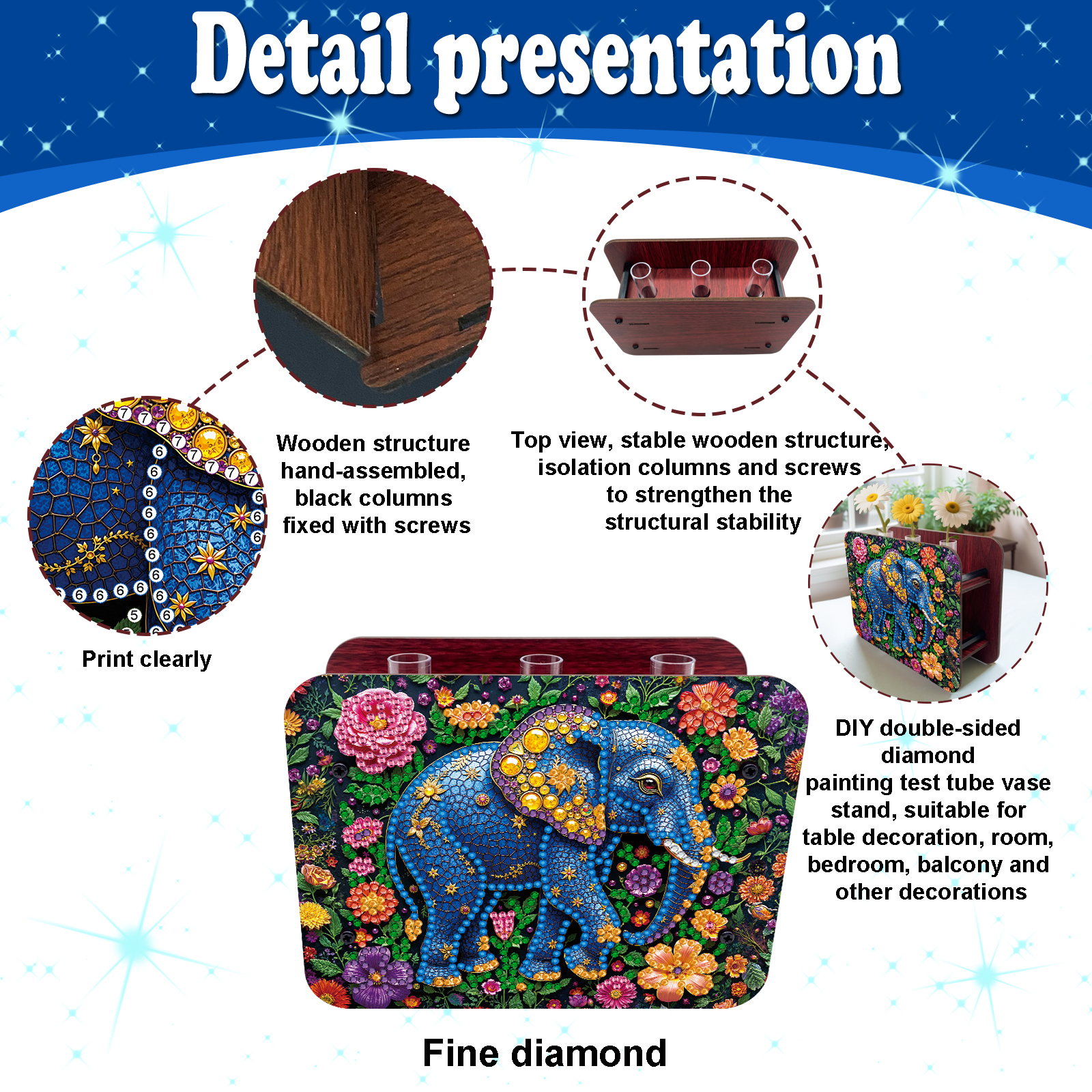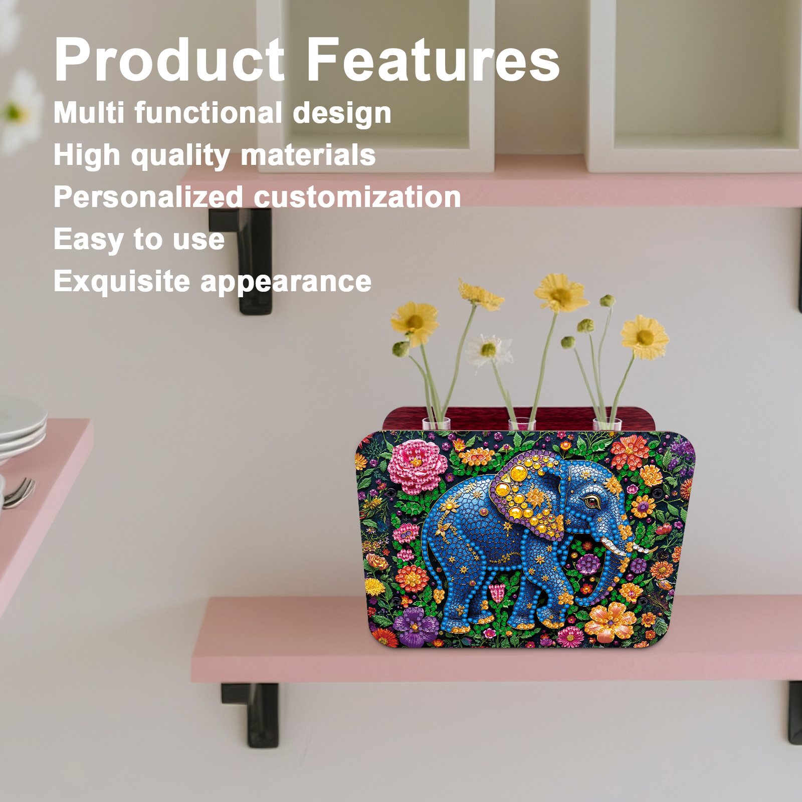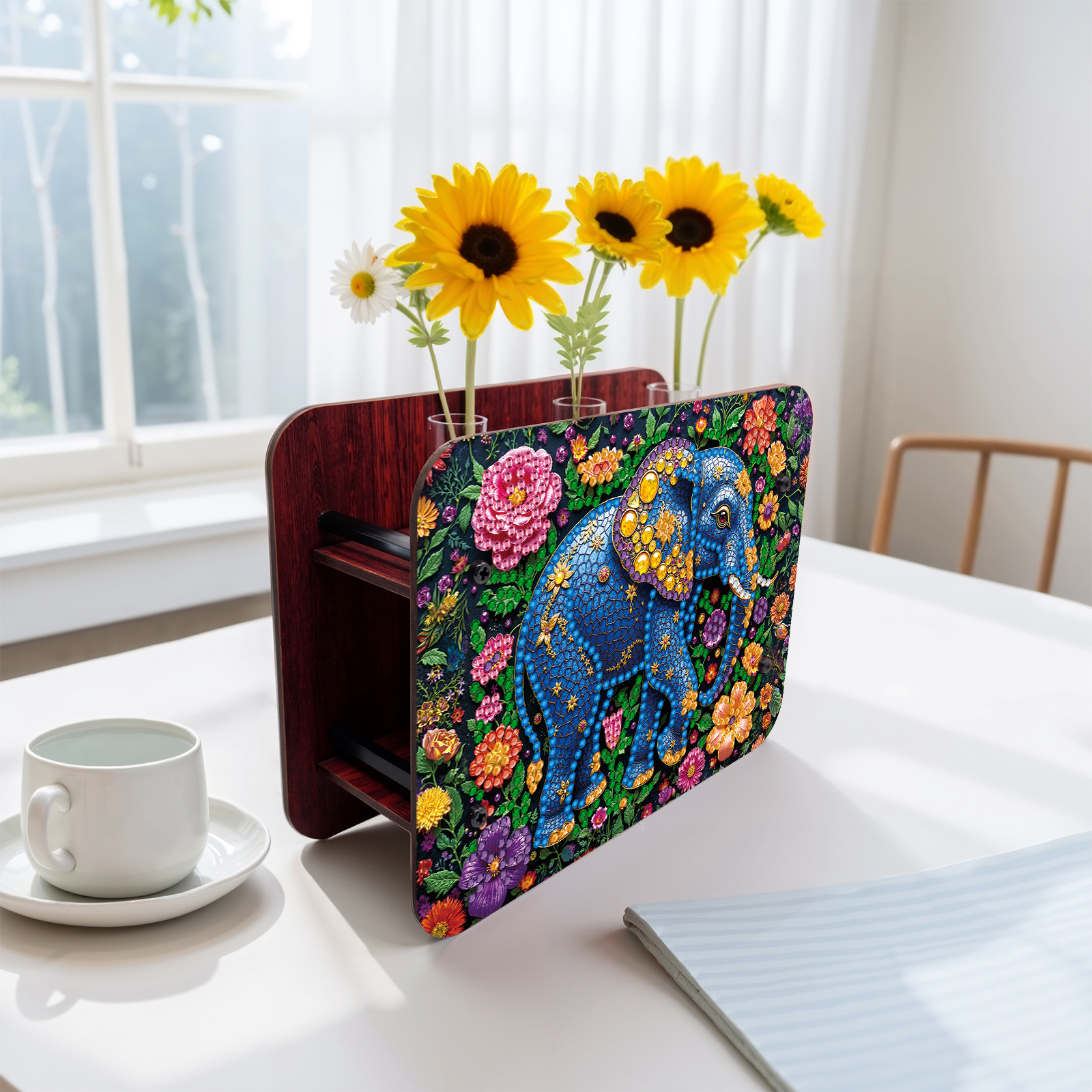 Elephant DIY Flower Vase Wooden Double Sided Desktop Diamond Art Kit Home Decor