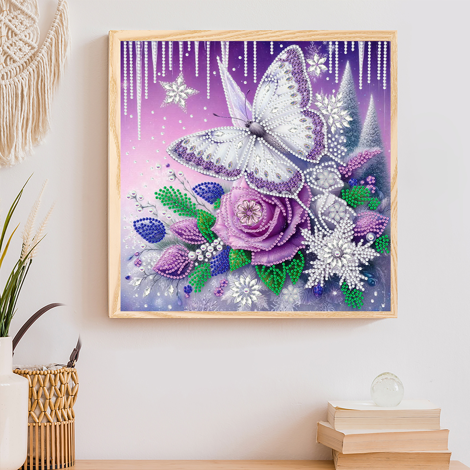 Flowers Butterfly - Diamond Painting - Partial Special Shaped Drill(Canvas|30*30cm)