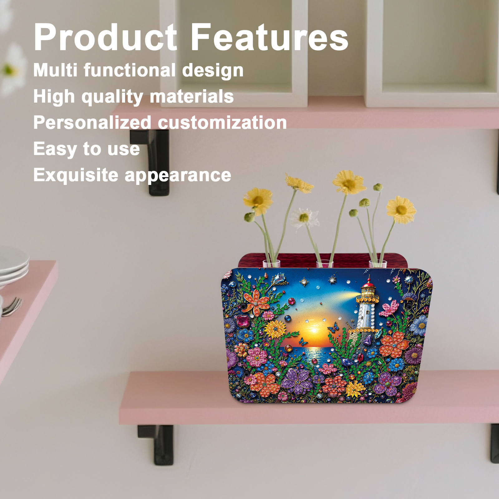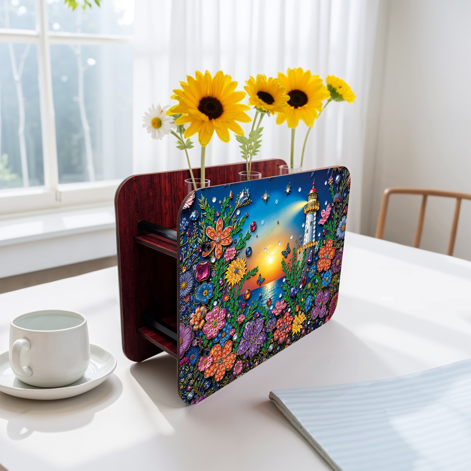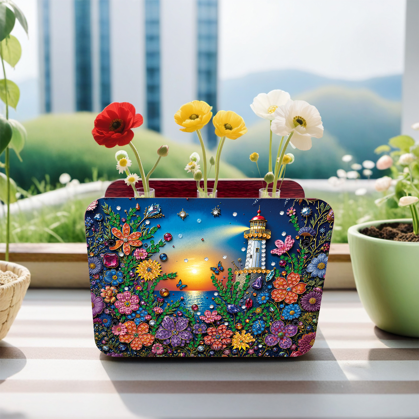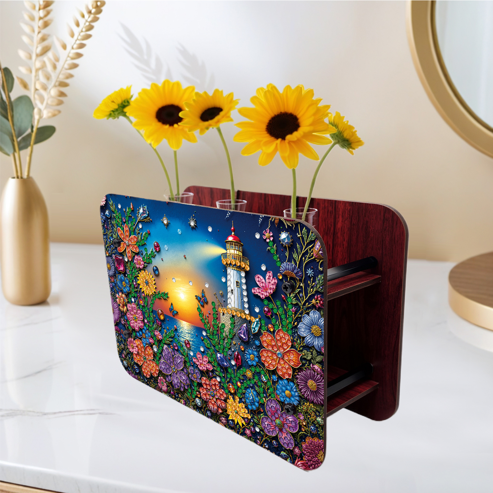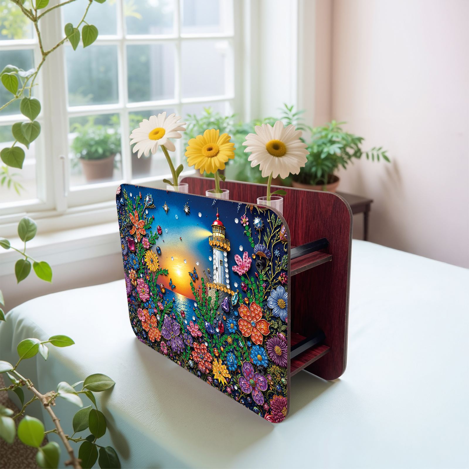 Lighthouse DIY Flower Vase Wooden Double Sided Desktop Diamond Art Kit Decor